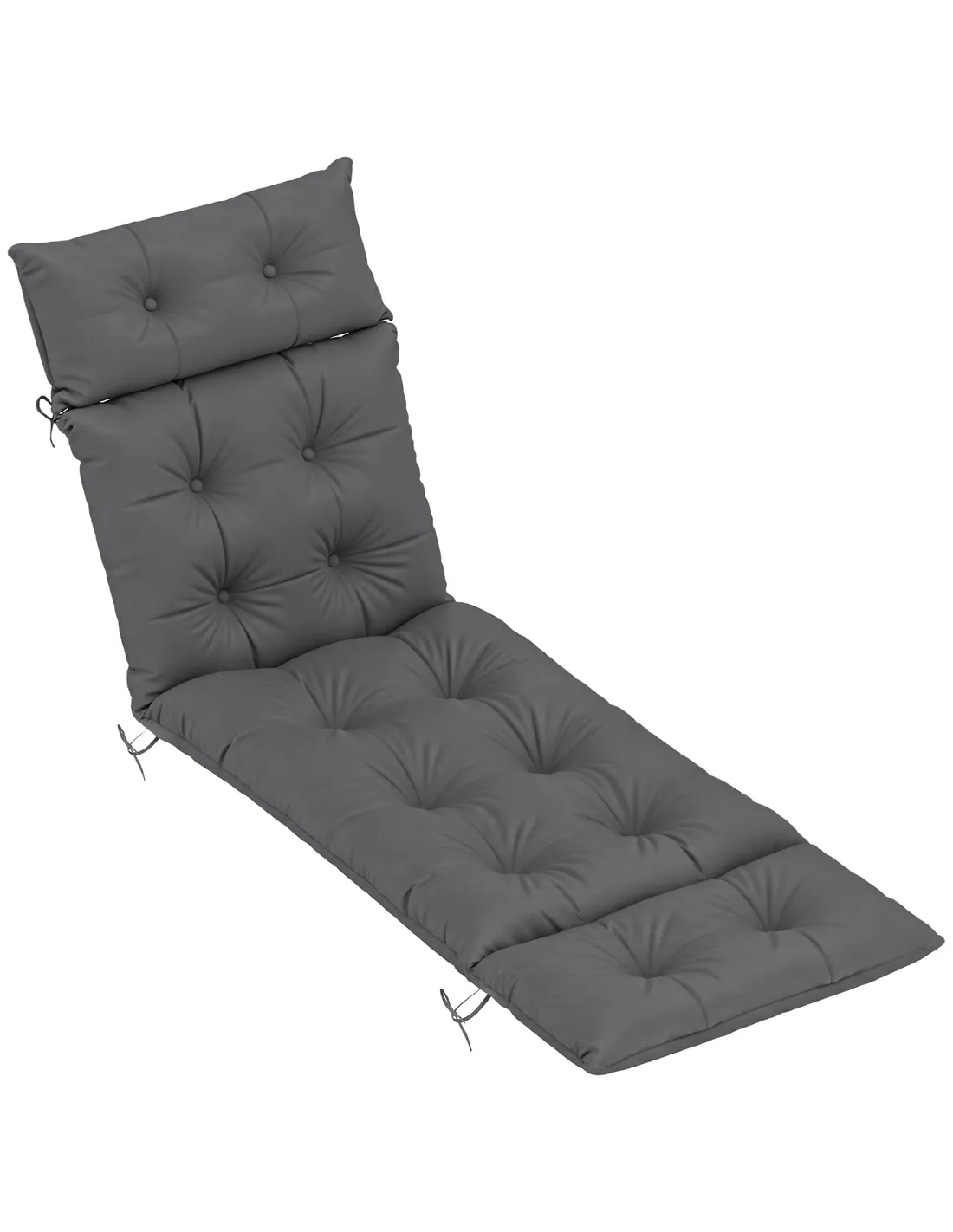 Outsunny Sun Lounger Cushions Only, 190x56x10cm Garden Lounge Chair Cushions, UPF20+ 220gsm Fabric, Thick Sunbed Replacement Pads with 6 Ties, Dark Grey