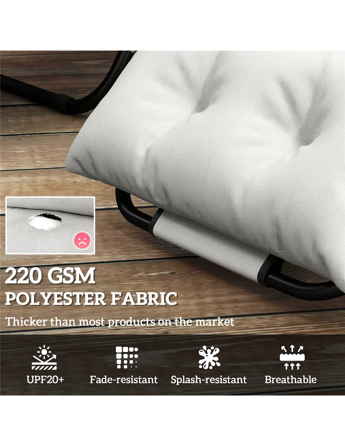 Yes, the cushions feature 220 gsm polyester fabric with a UPF20+ coating, making them durable and resistant to weathering, splash-resistant, and fade-resistant. - How should I care for the cushions to prolong their lifespan?