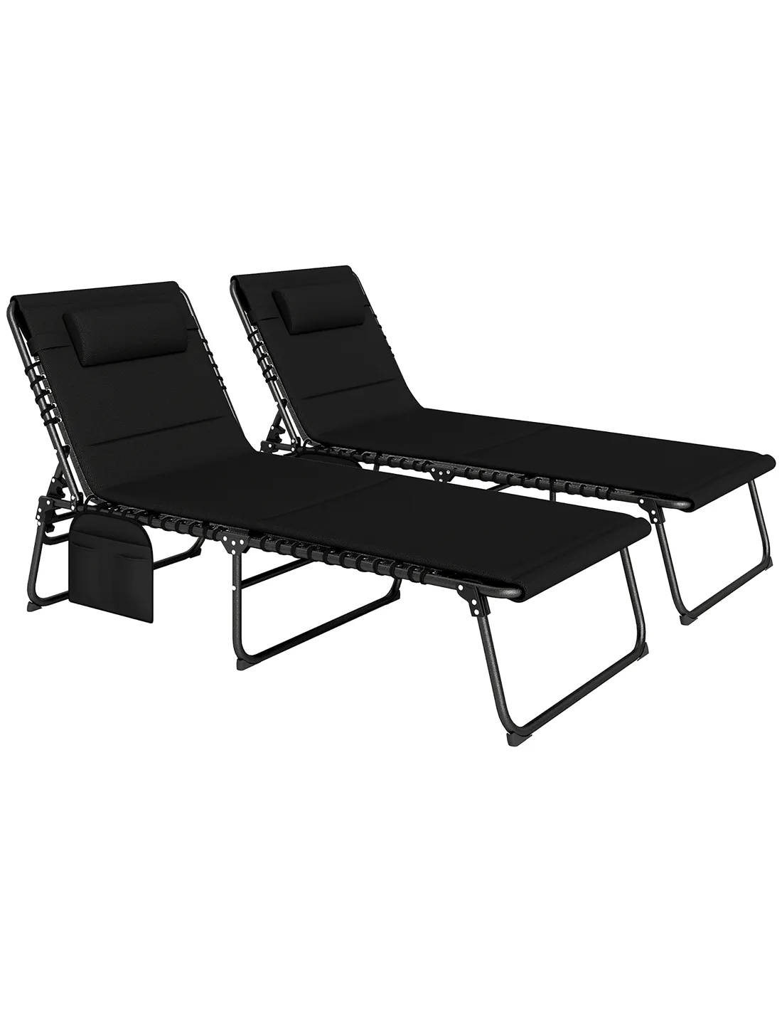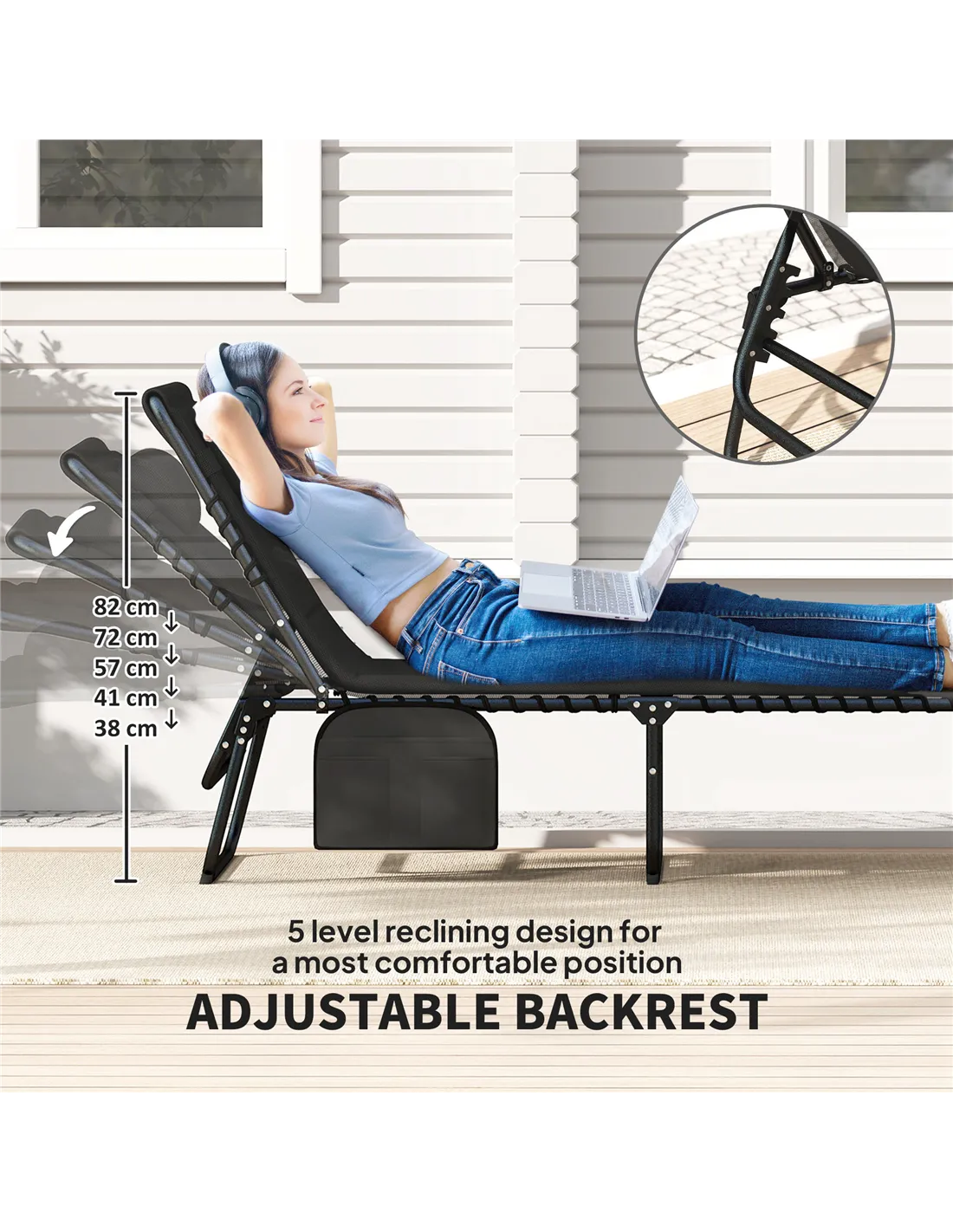 Relax with a friend outdoors with this set of two Outsunny sun loungers. The five-level adjustable backs allow you to recline to a position most comfortable for you. The frames are made from powder coated steel for a strong, supportive core - loungers are complete with handy side pockets.