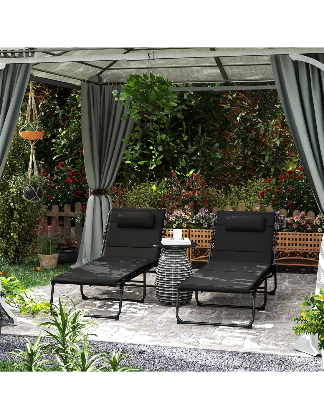 Outsunny Set of Two Reclining Sun Loungers - Black