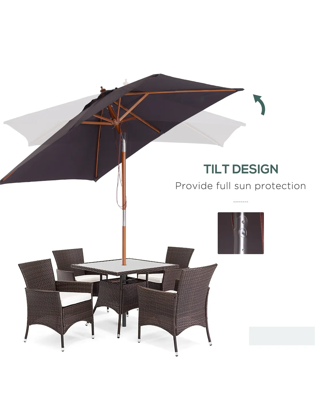 - Perfect addition to outdoor dining tables, providing shelter while enjoying meals or drinks in the fresh air.