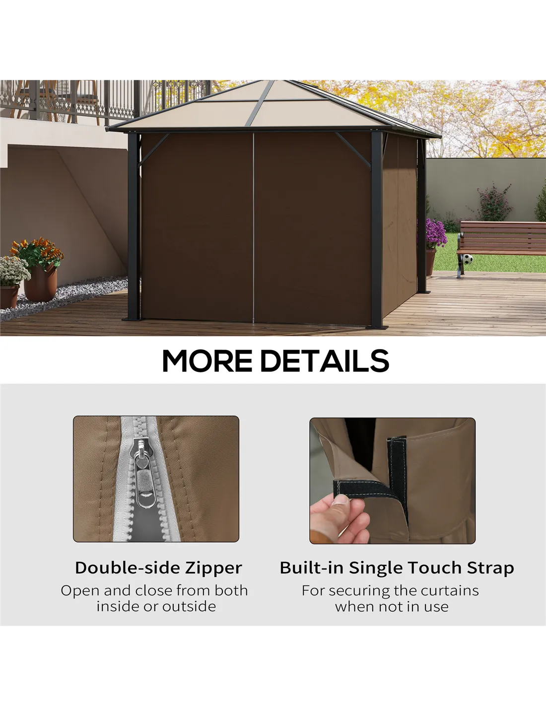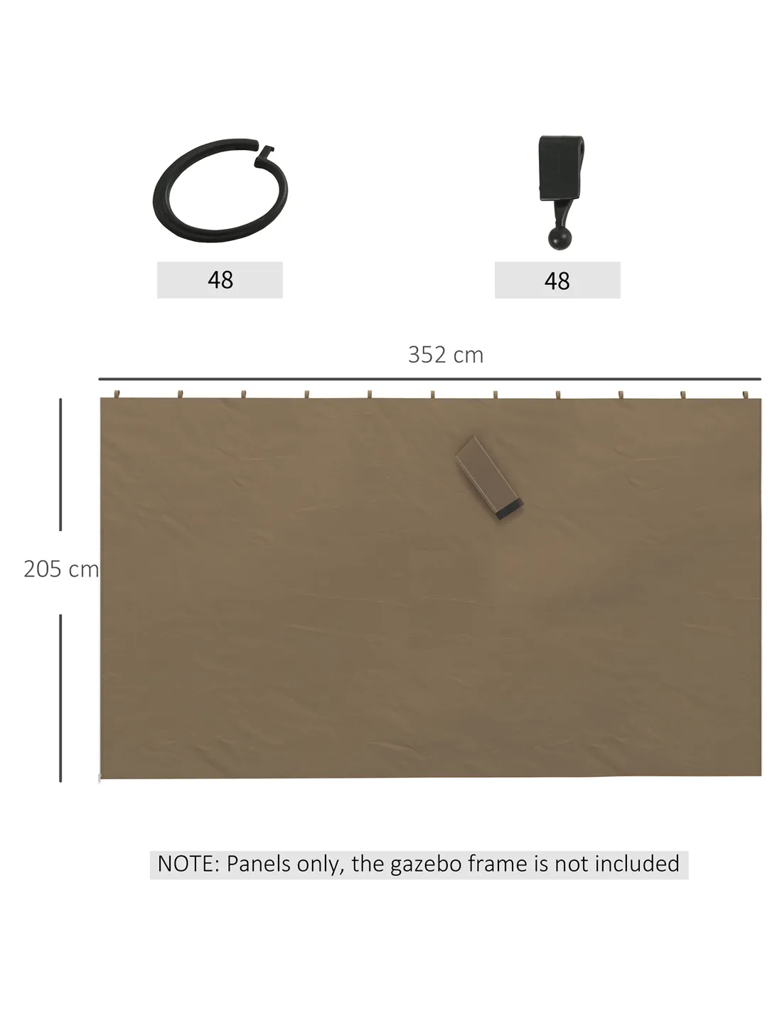 Outsunny 4 Pack Replacement Gazebo Curtains Privacy Panel for Most 3 x 4m Gazebo Canopy Pavillion Outdoor Shelter Sidewalls Accessories Dark Brown