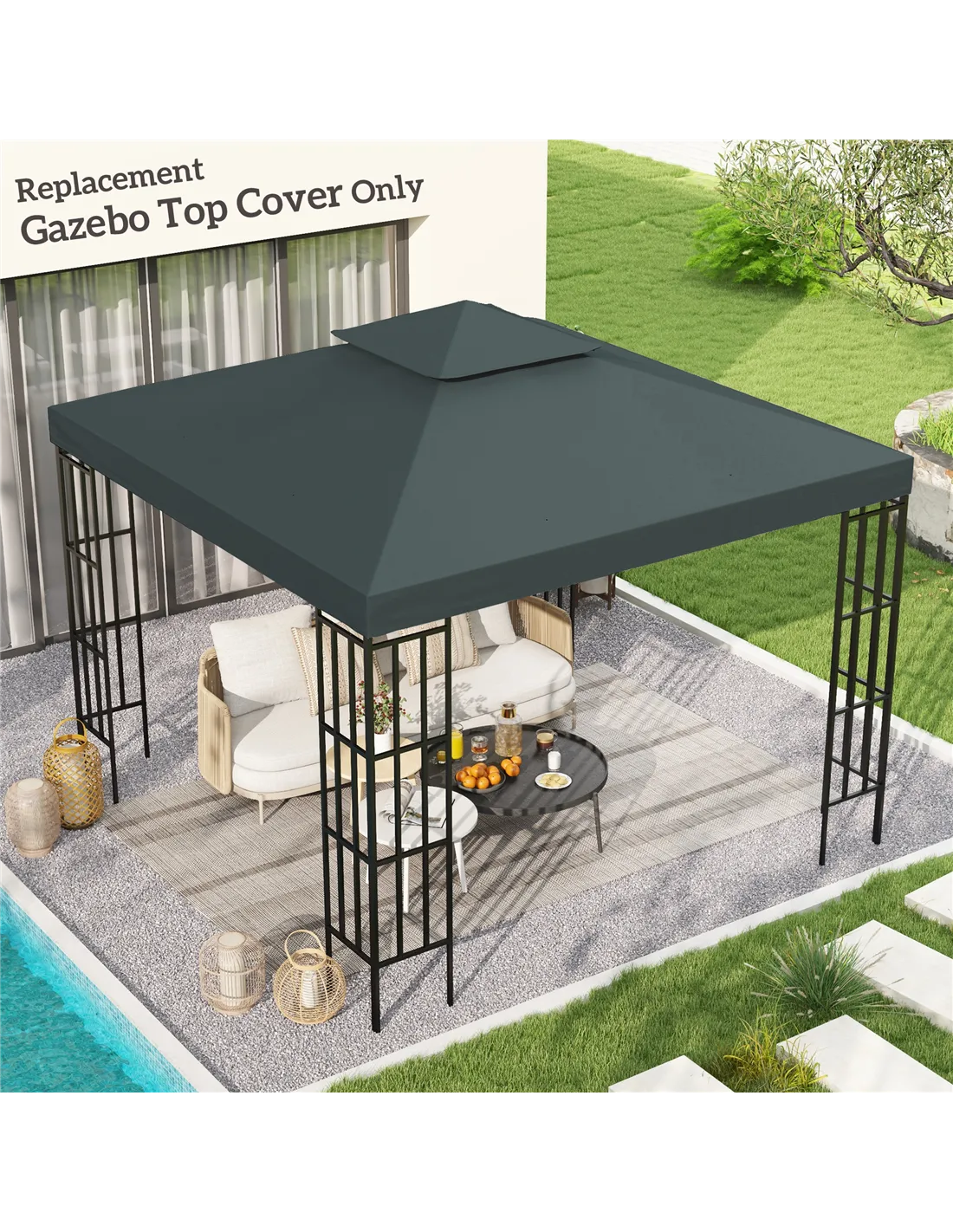 Outsunny Gazebo Roof Replacement, for 3 x 3(m) Frames - Grey
