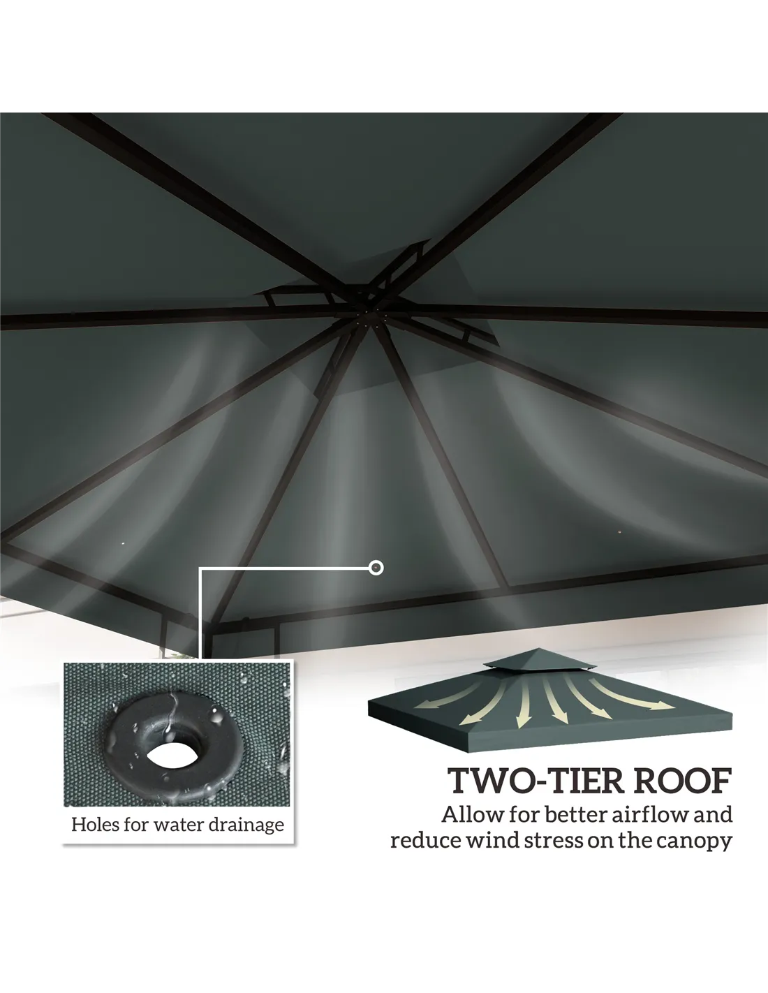 - Two-tier roof lets air pass in and out easily