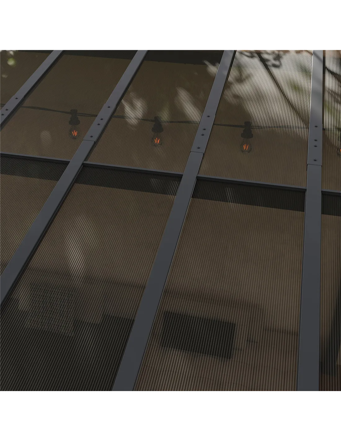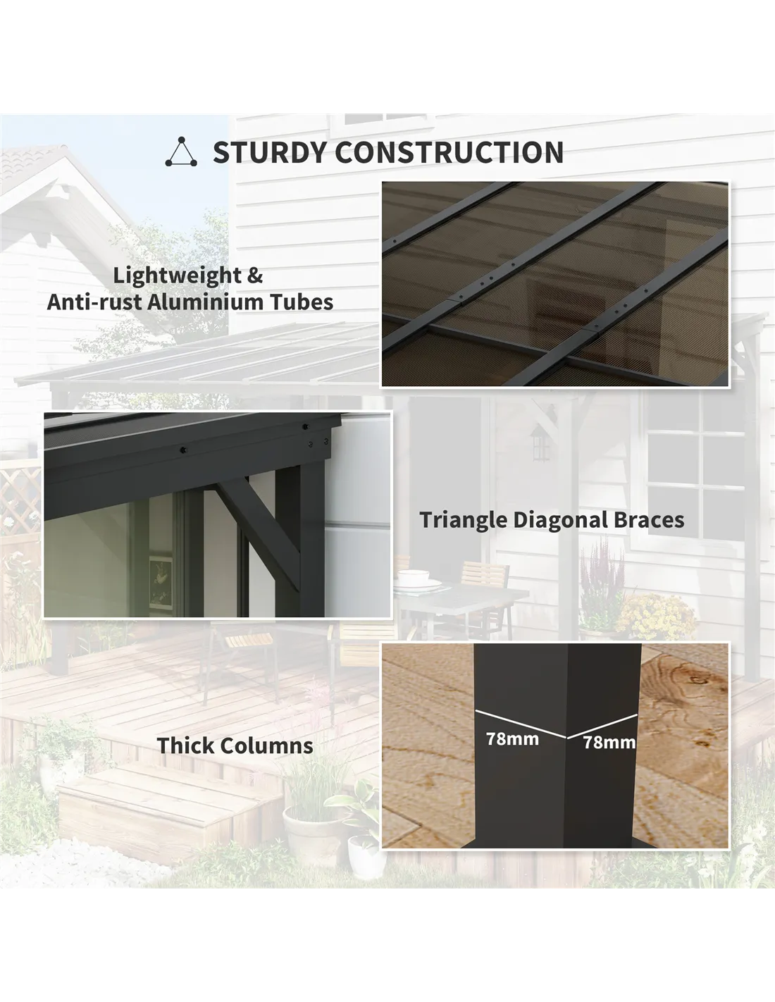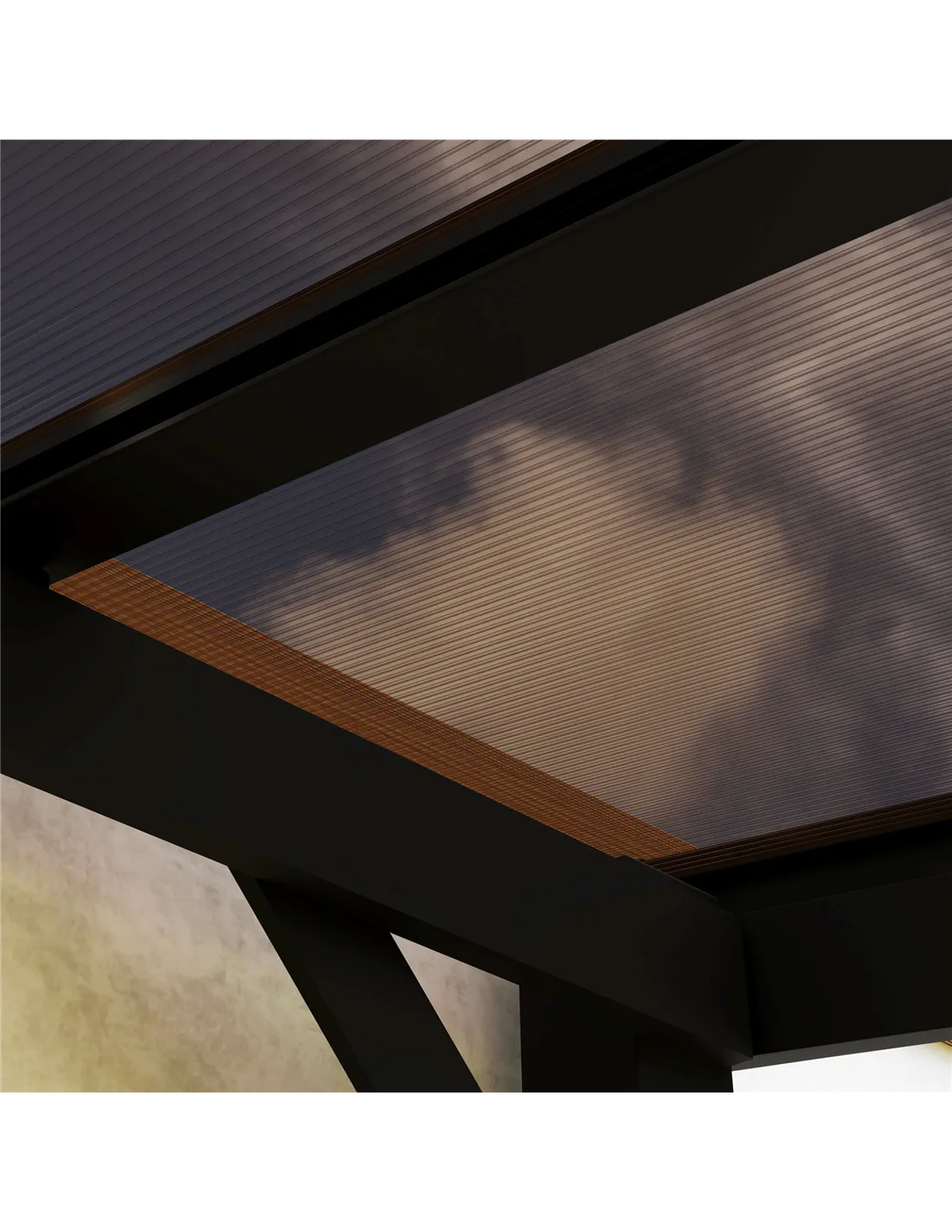 Outsunny 3 x 3(m) Metal Pergola with UPF 50+ and Waterproof Polycarbonate Roof, Wall-Mounted or Free Standing Garden Gazebo, Wind-resistant Outdoor Sun Shade, Dark Grey