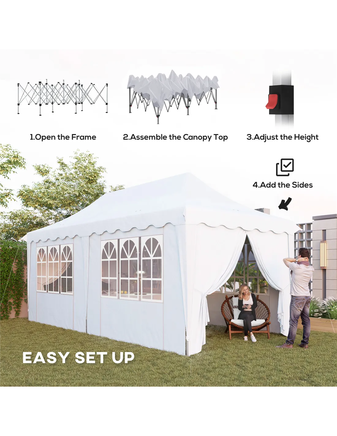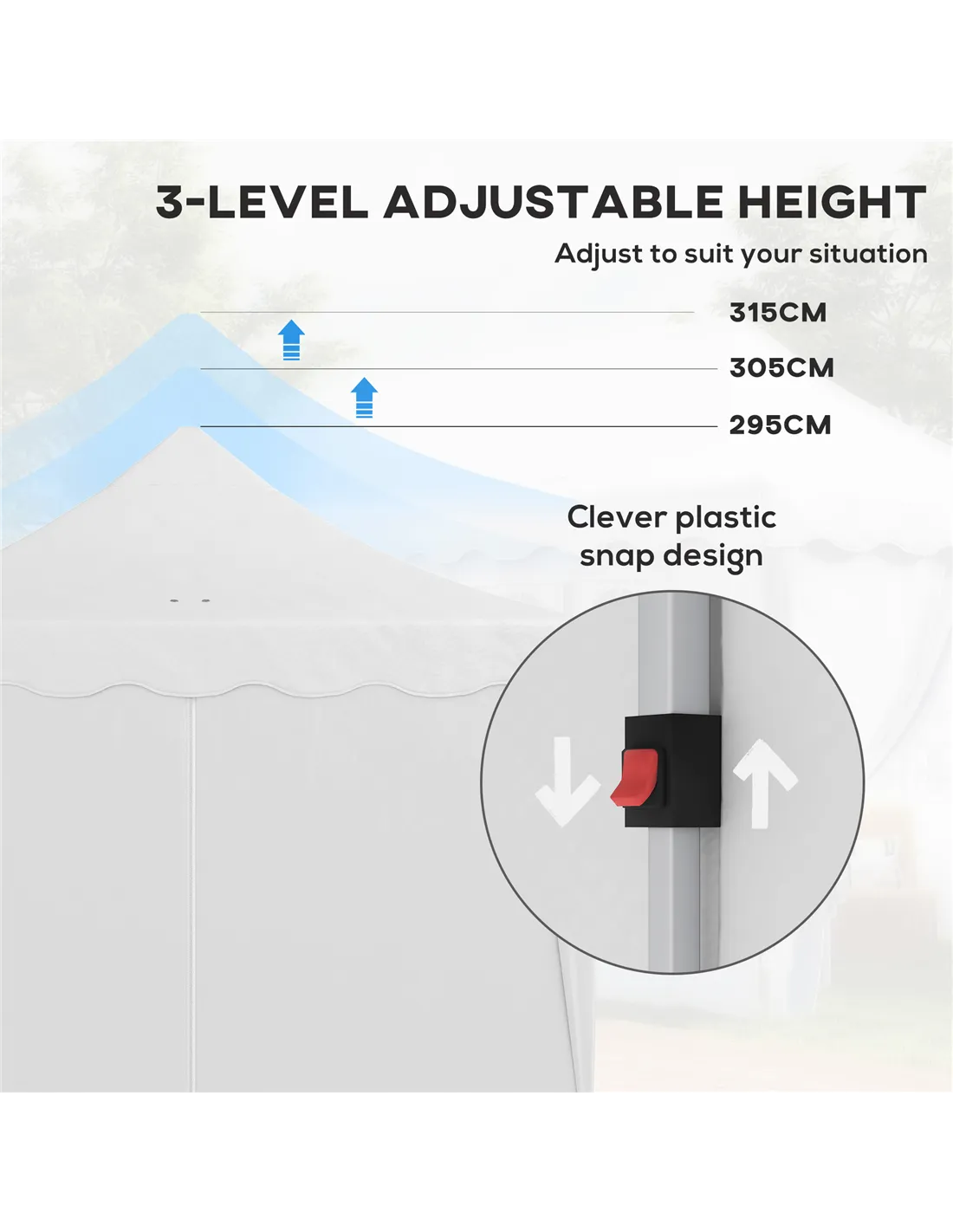 Outsunny 3 x 6m Pop Up Gazebo with Sides, UPF50+ Height Adjustable Marquee Party Tent, Wedding Canopy, Instant Event Shelter with Carry Bag and Sand Bags for Garden, White
