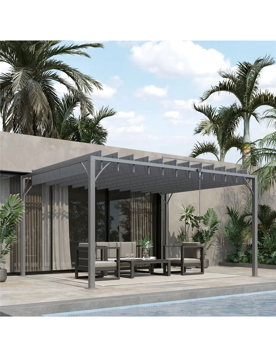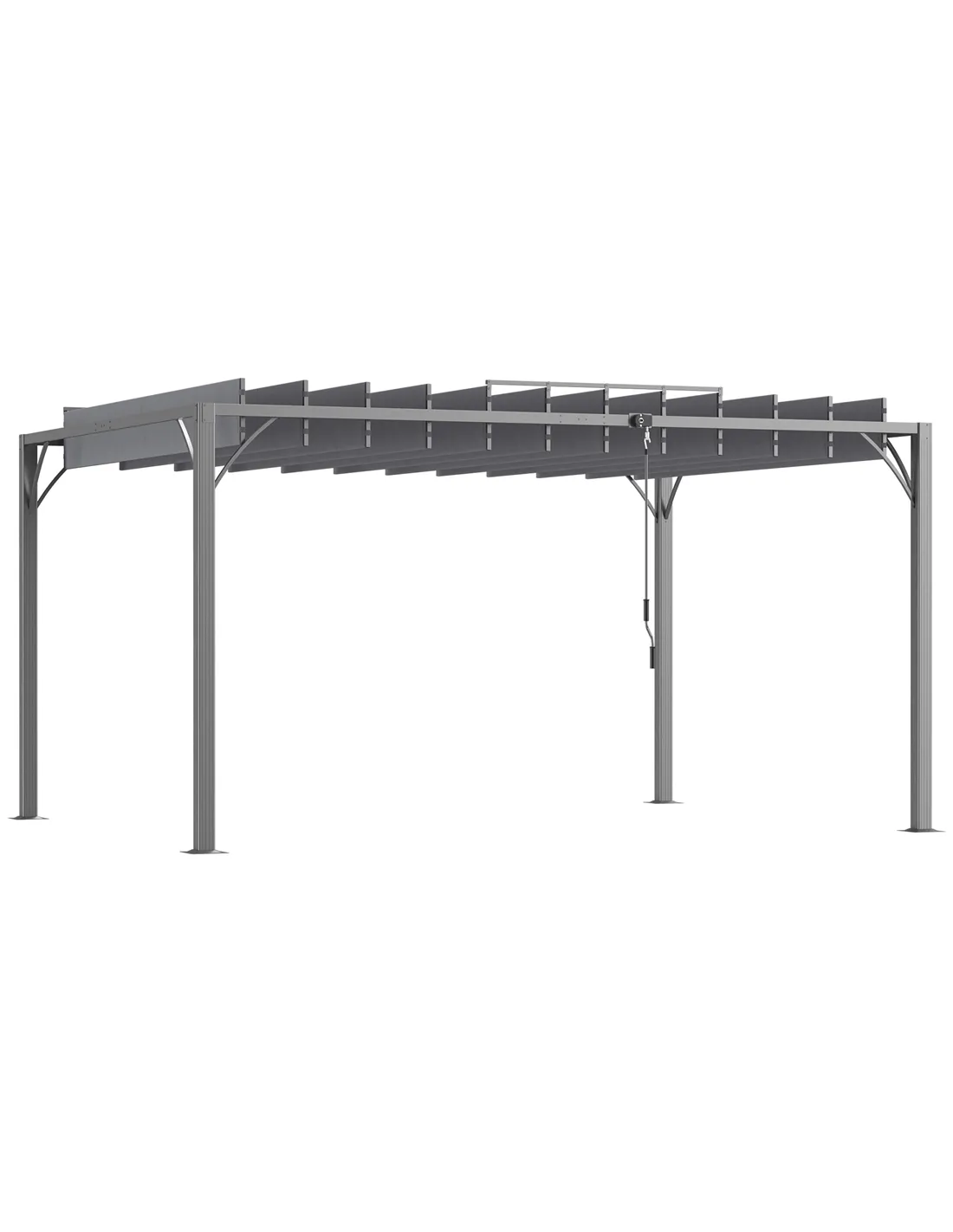 Outsunny 4 x 3(m) Outdoor Pergola with Retractable Roof, Aluminium Louvered Patio Gazebo Canopy for Lawn Garden Patio, Grey