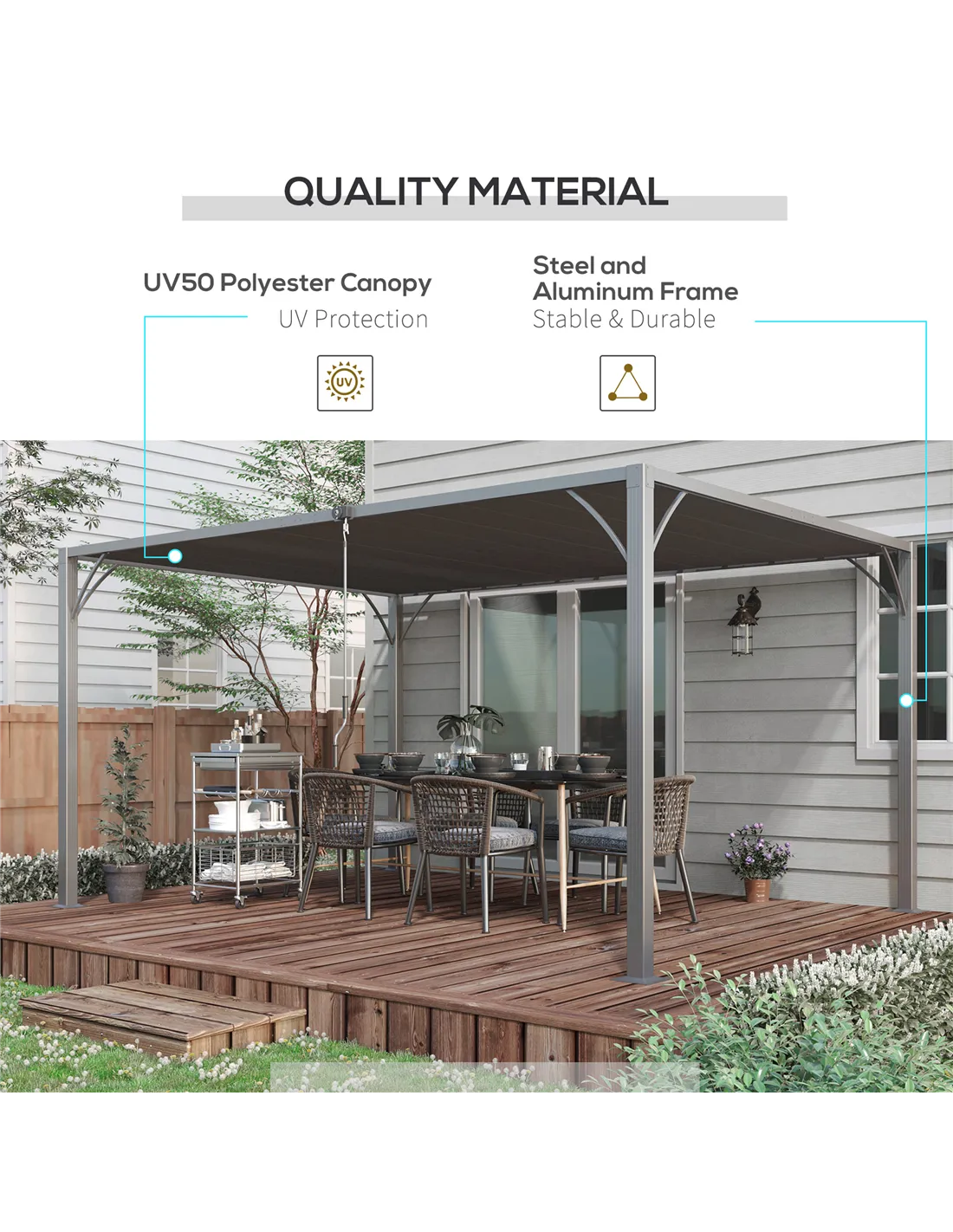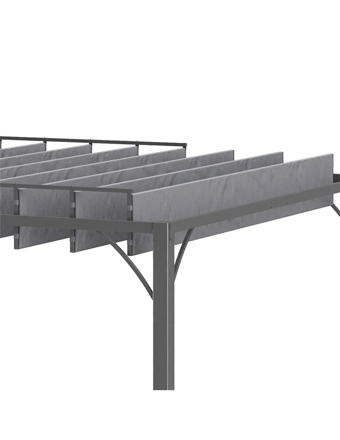 This modern garden pergola from Outsunny will decorate your outdoor areas. The large size of 4 x 3(m) provides plenty of room for the whole family or several friends. The aluminium frame combined with the steel structure ensures the metal gazebo for patios stands in place. Its louvred roof with UV50+ protection shields you from direct sunlight and can be adjusted to different angles. This polyester fabric in this pergola canopy will ensure you enjoy this cosy space for years to come.