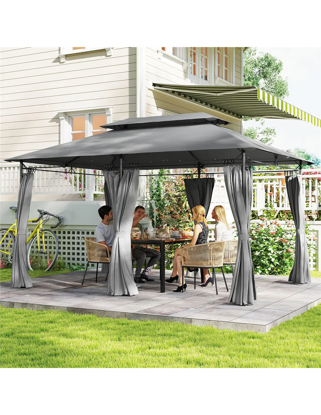 Outsunny 3 x 4m Metal Frame, Two-Tier Roof Gazebo - Dark Grey
