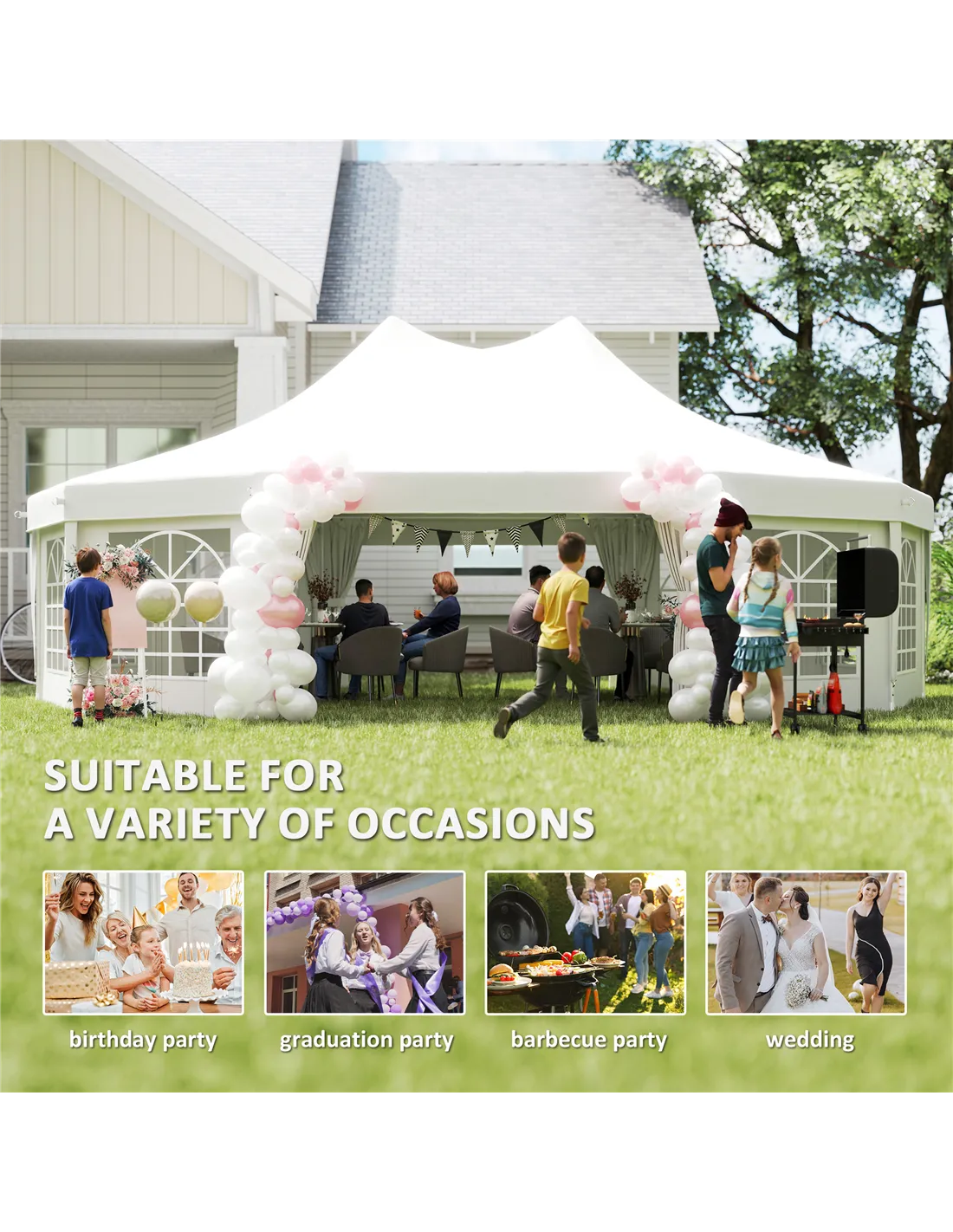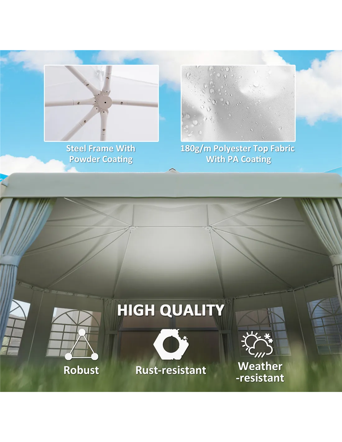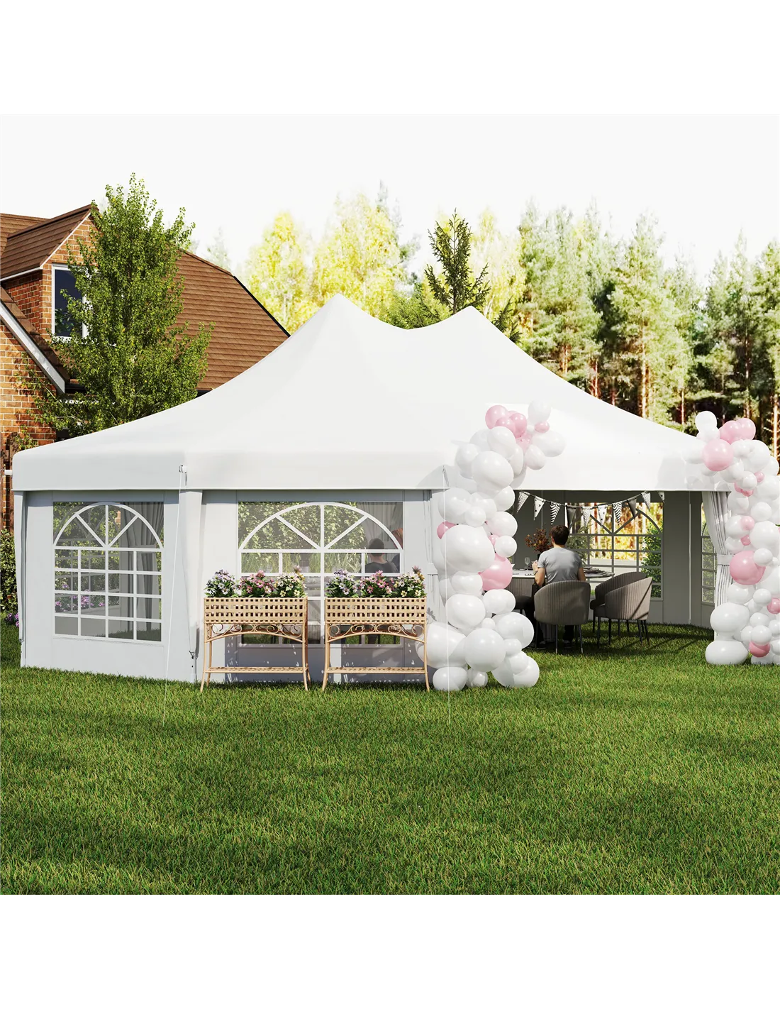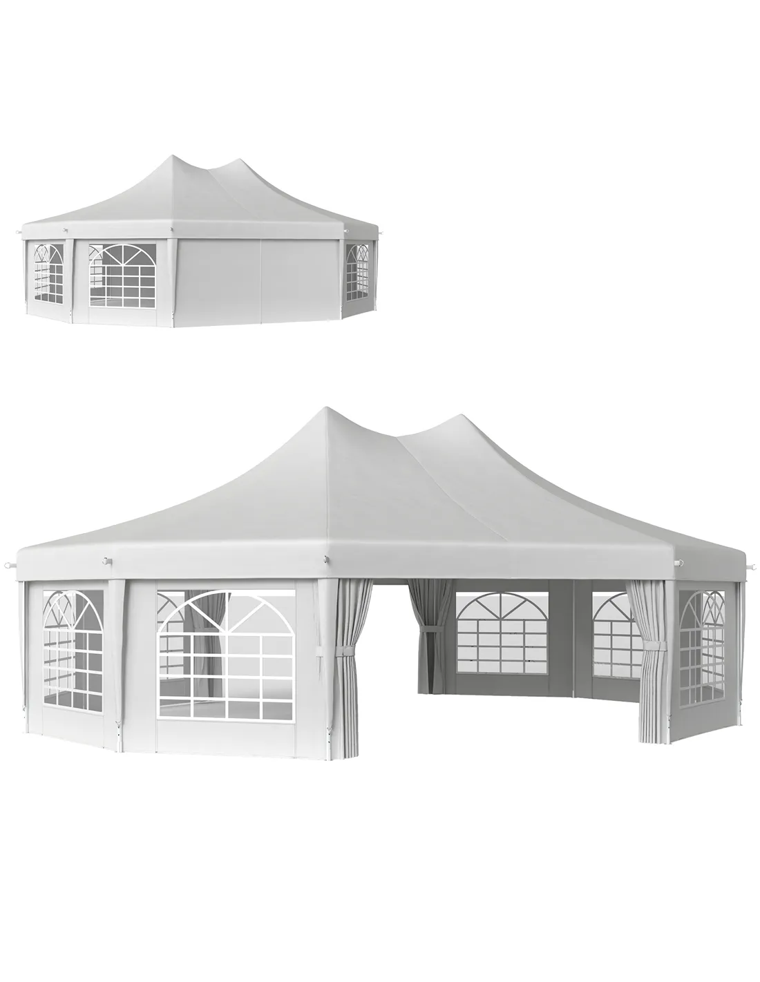 Outsunny 10 Sides Decagonal Garden Gazebo Marquee Party Tent Wedding Canopy Outdoor Heavy Duty Metal Frame (8.9m x 6.5m) - White