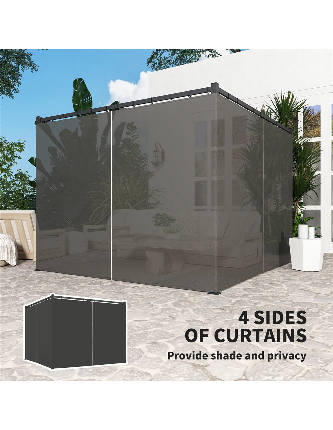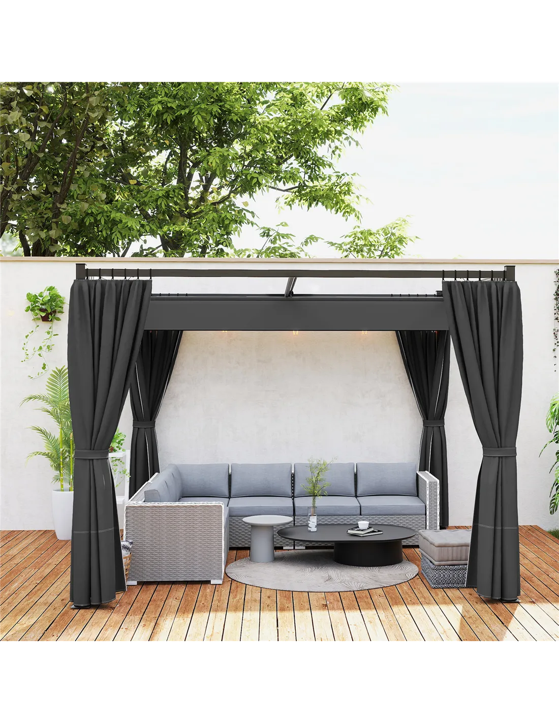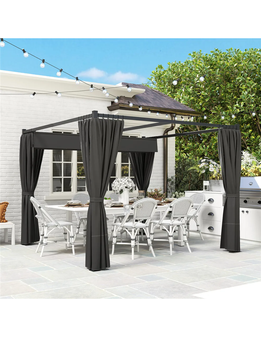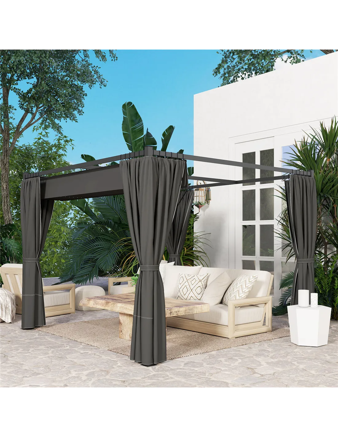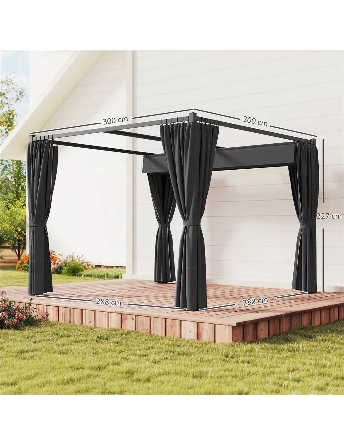 Outsunny 3 x 3(m) Retractable Pergola, Garden Gazebo Shelter with Curtains, for Grill, Patio, Deck, Charcoal Grey