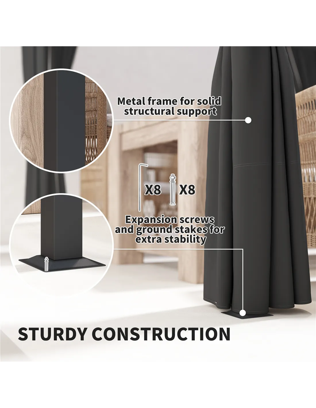 This retractable pergola from Outsunny allows you to adjust the canopy as you desire - enjoy the sunshine or relax in the shade. The metal structure is strong, with ground stakes and expansion screws included to keep it attached to the floor. It comes with a moving PU coated roof - easy to deal with moving sun rays. The curtains can also be moved - create an open/disclosed surroundings too. Enjoy outdoors better than ever before.