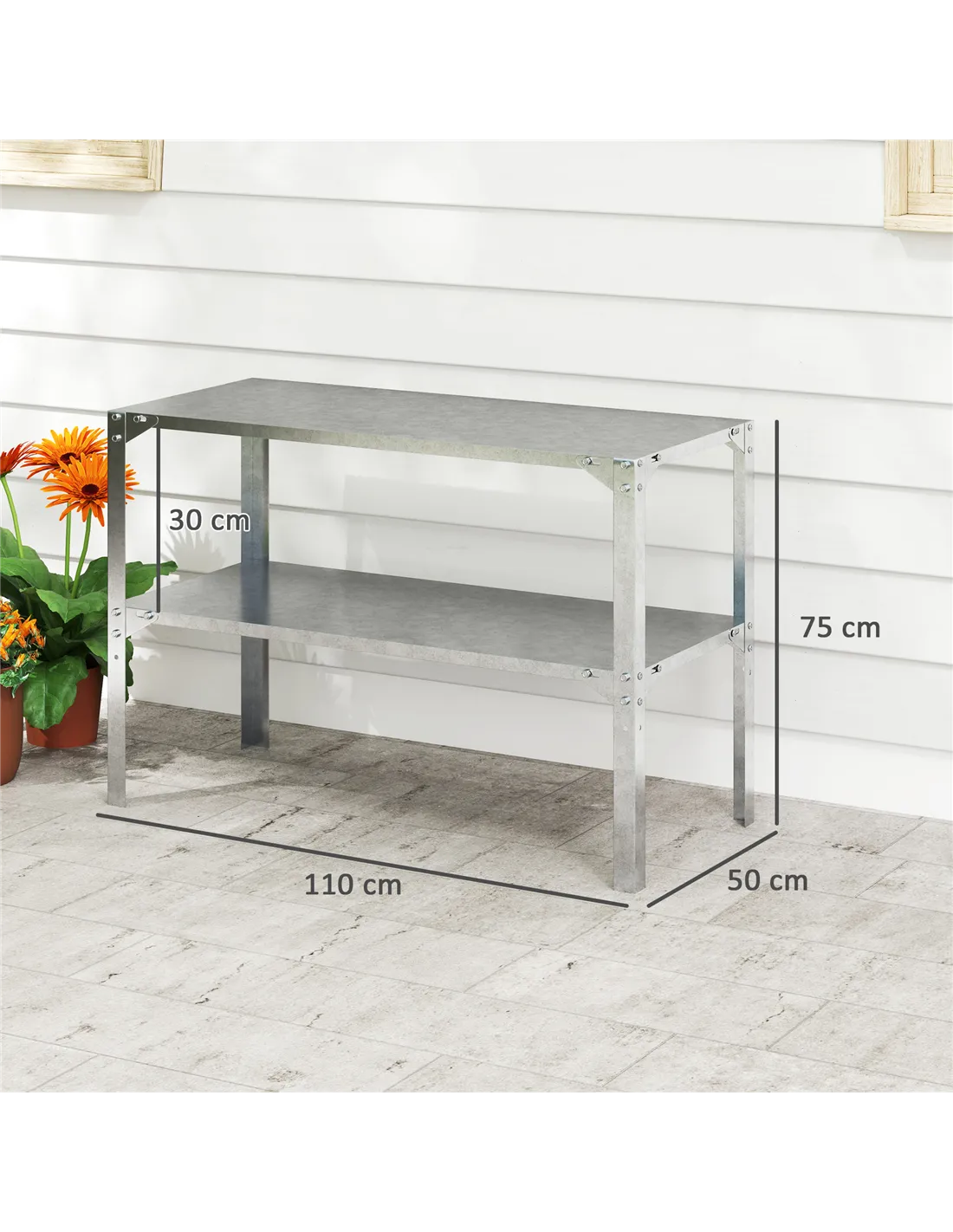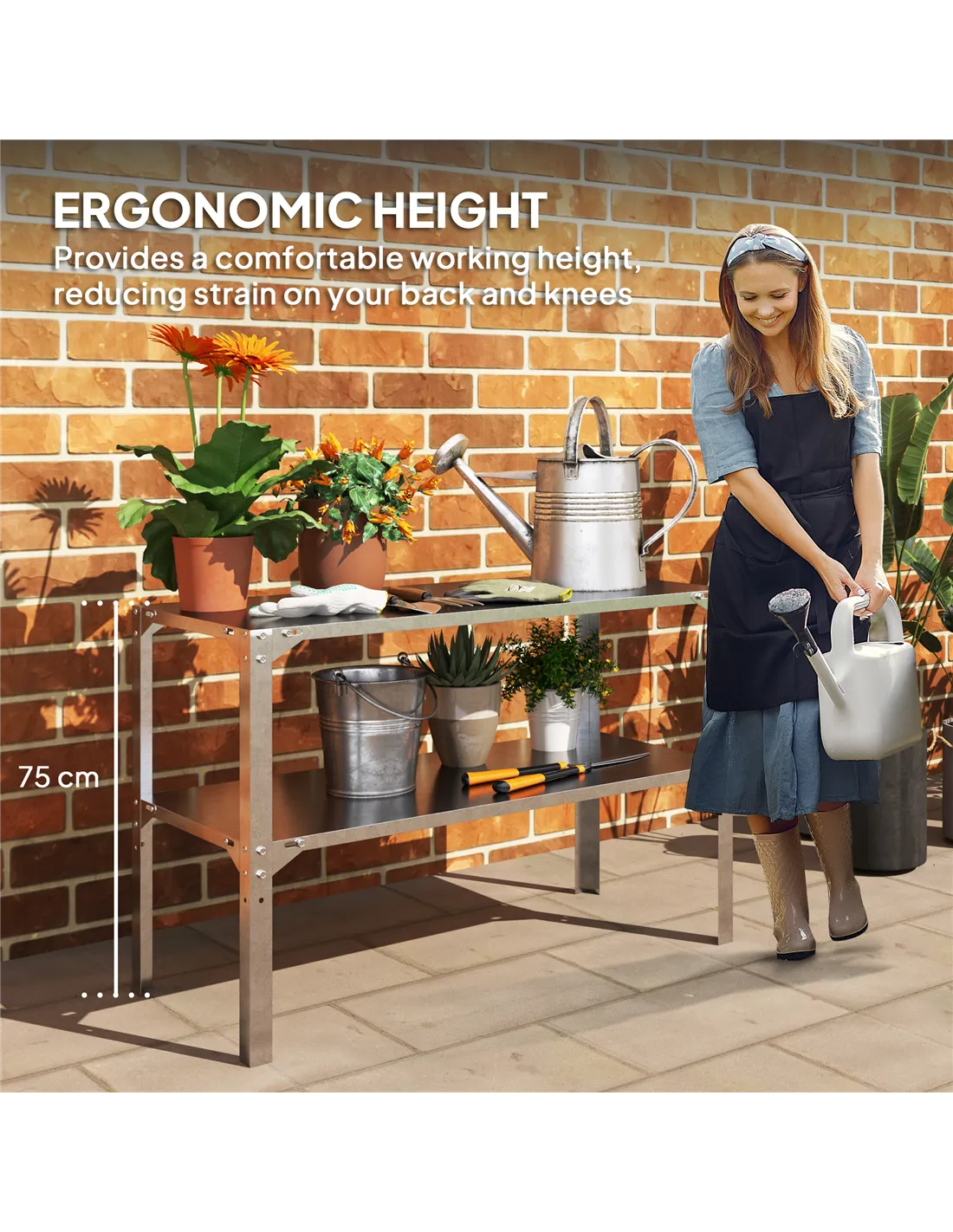 Transform your gardening experience with the Outsunny Planting Table! Designed for ease, this galvanised potting table's ergonomic 75cm height saves your back and knees during plant potting. Boasting dual shelves that support up to 50kg each, it offers lots of space for all your garden essentials. Crafted from rust-proof, galvanised steel, it's a reliable addition to any green space.