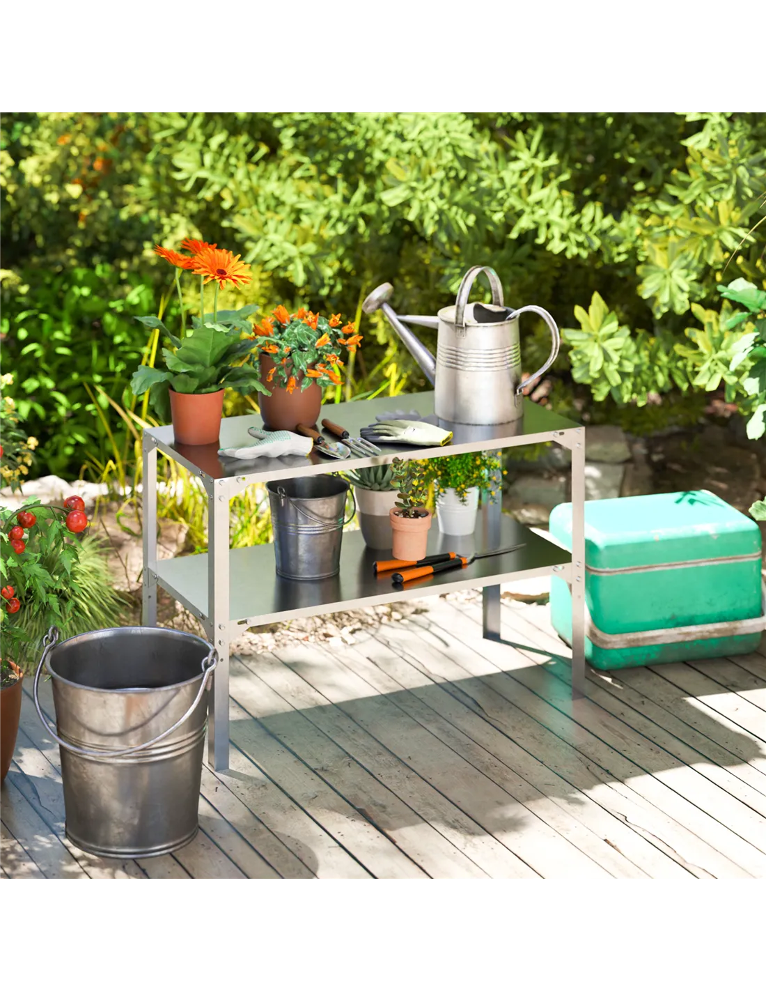 - Versatile design for planting, repotting and tool storage