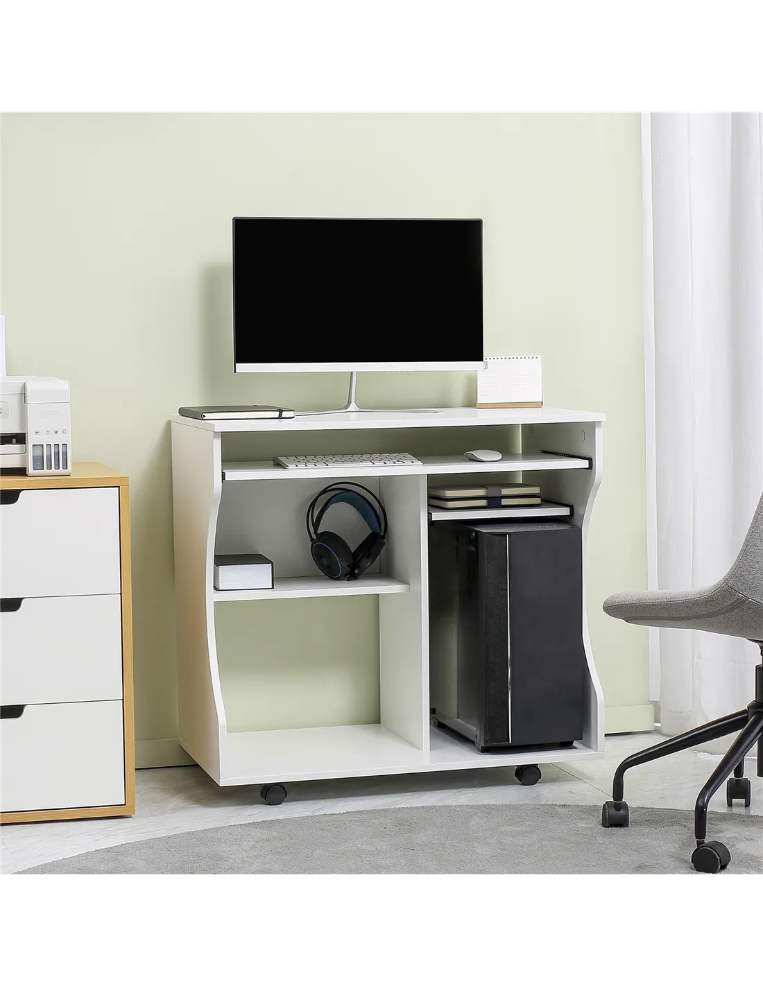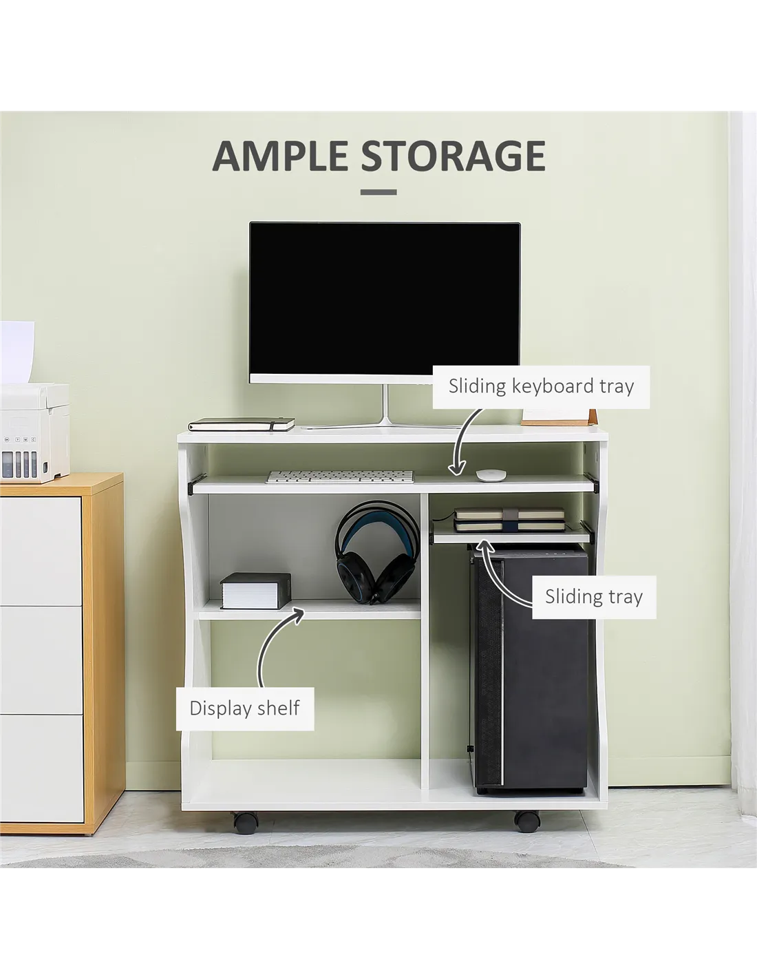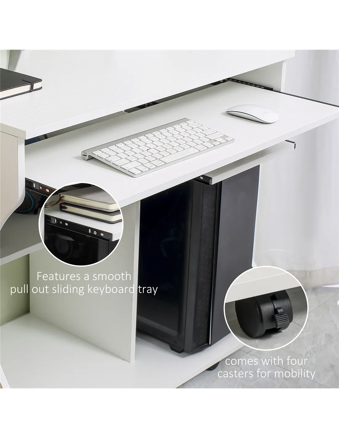 HOMCOM Multi-Storage Compact Work Desk, with Wheels - White