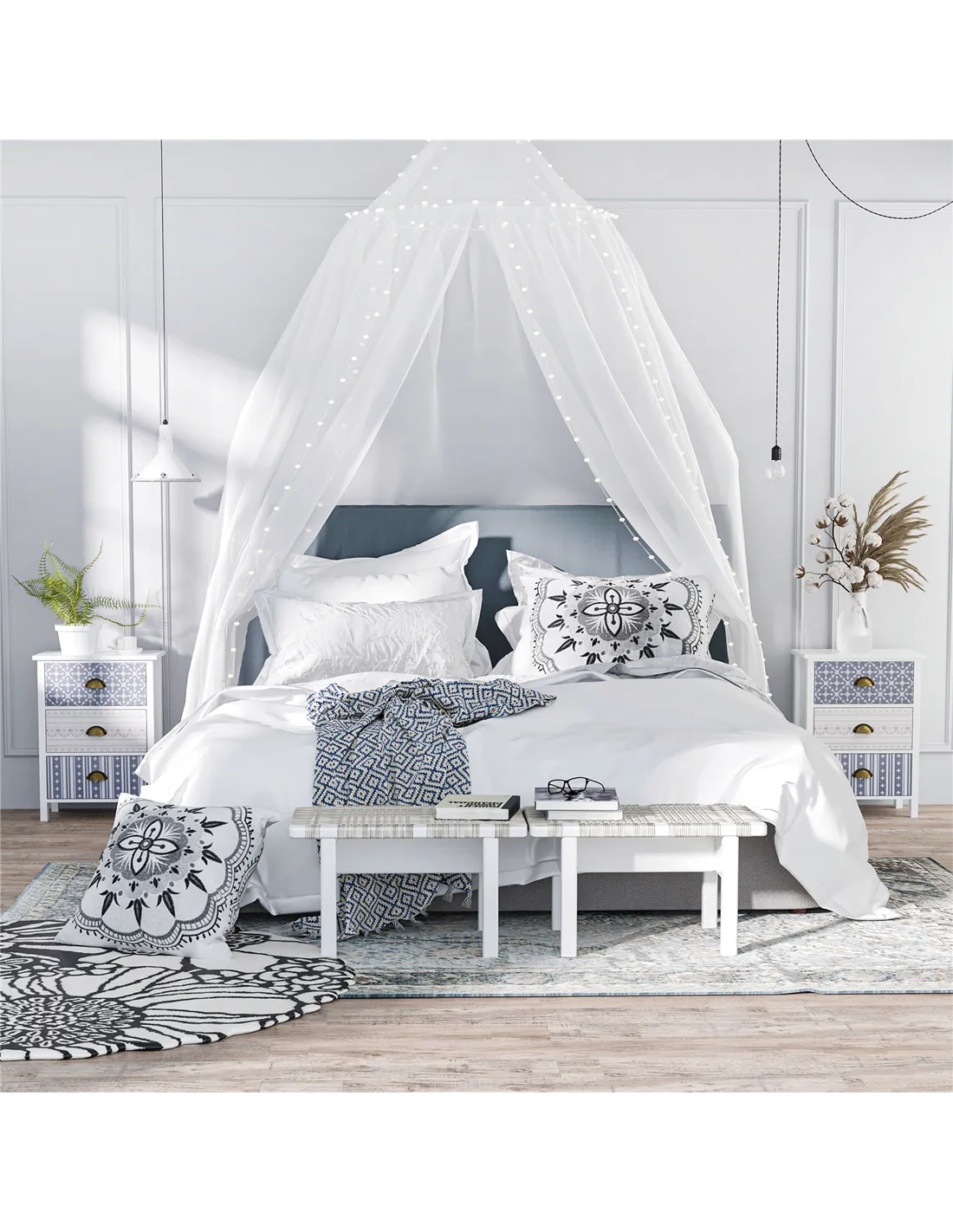 The bedside tables are crafted from durable MDF with a protective paint finish, ensuring longevity and ease of maintenance.