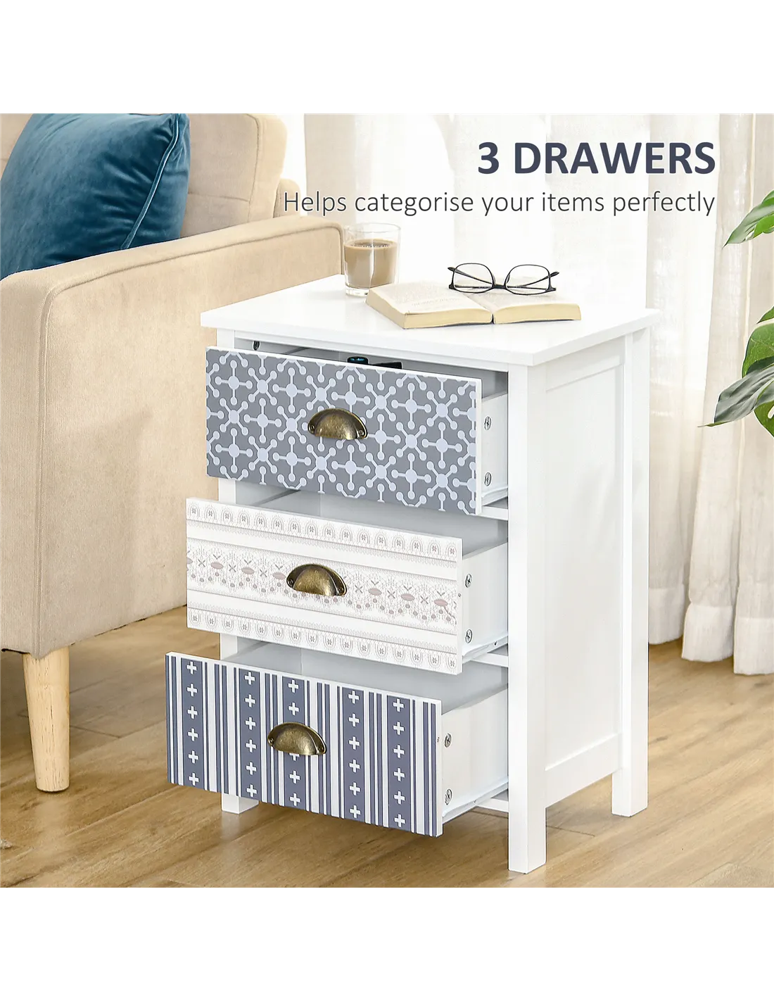Add character to any area of your home with this three-drawer unit from HOMCOM. It offers plenty of space for storage, keeping your home clean and organised. Made from MDF, this storage cabinet is built to last, suitable for daily use. Whether it's for the bedroom, the living room, or even the attic, this is the piece to stand proud in place.