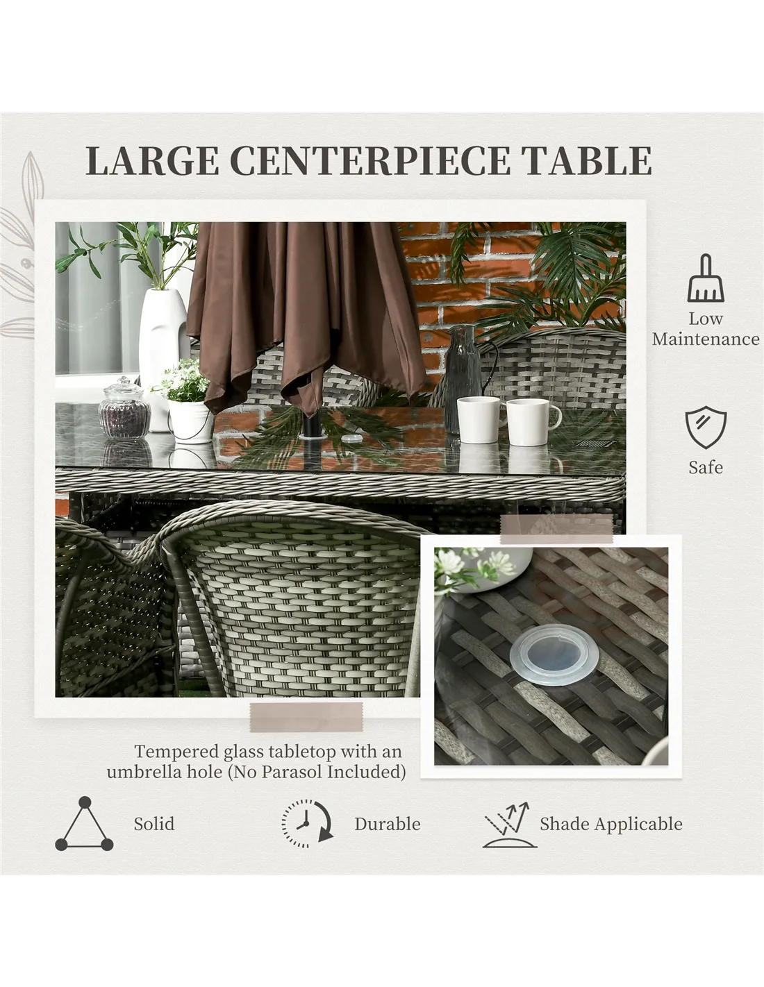 - Umbrella Hole Size: Φ5 cm