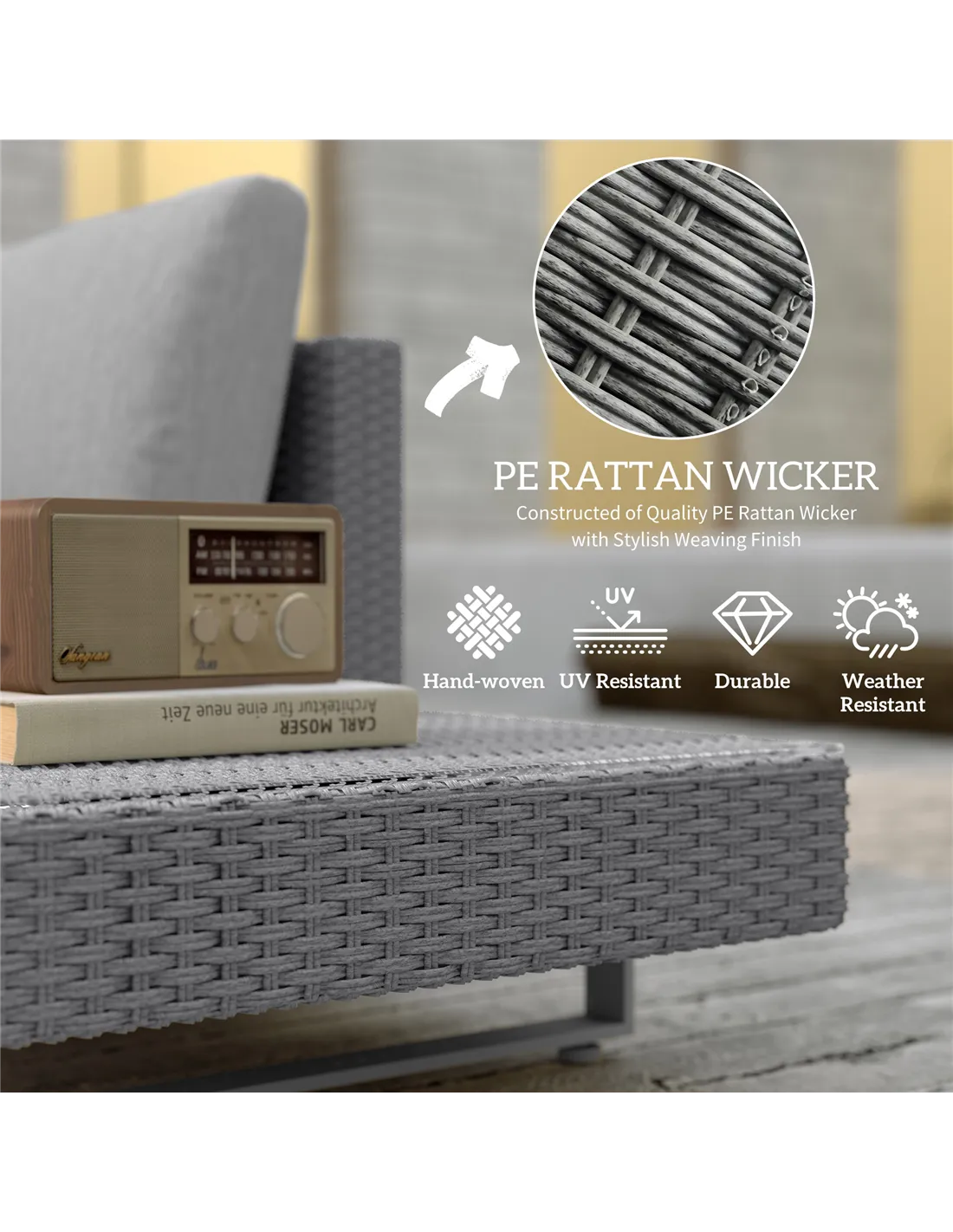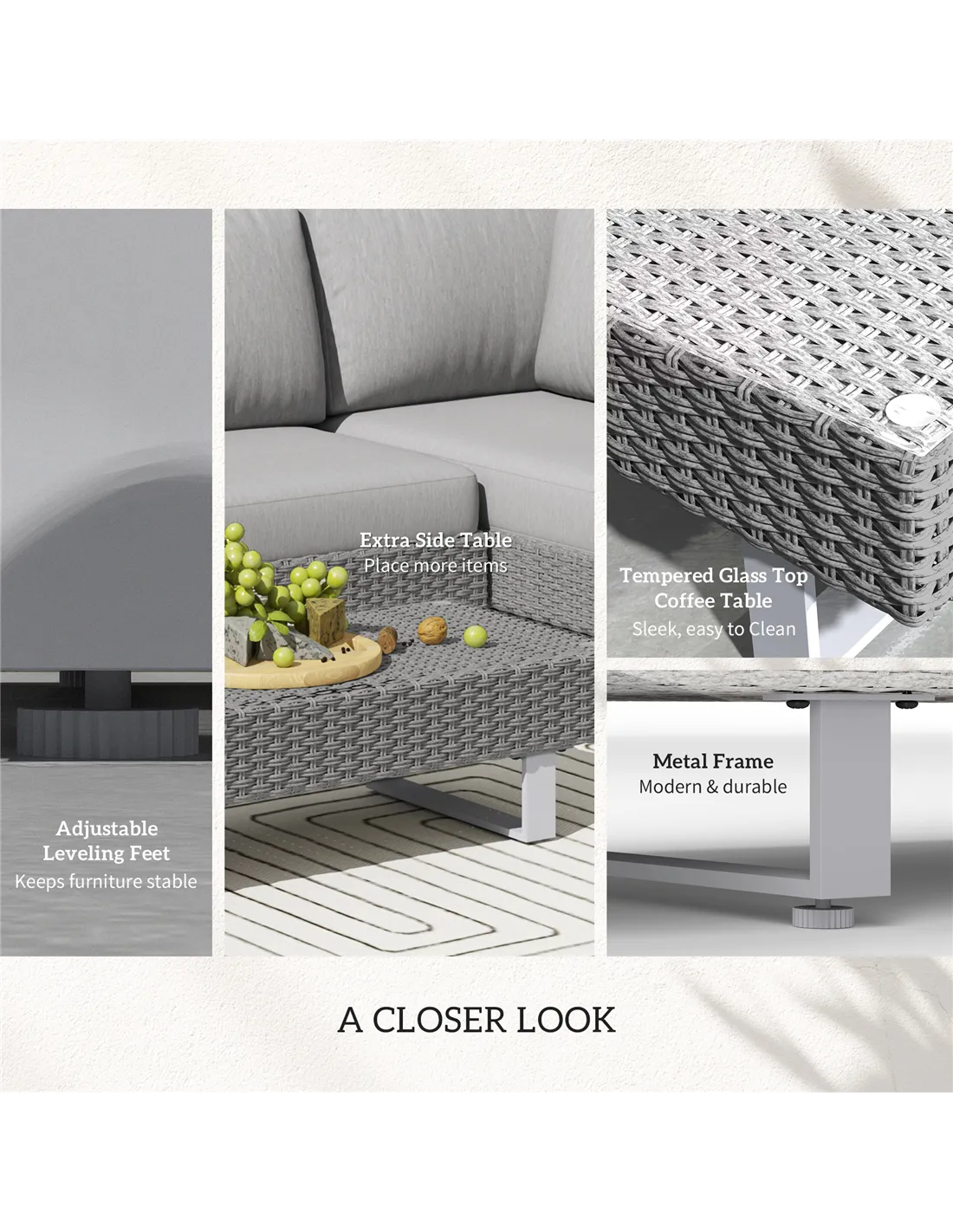 Outsunny 5-Seater Rattan Wicker Sofa Set Furniture Patio Tea Table Set with Cushions, Light Grey