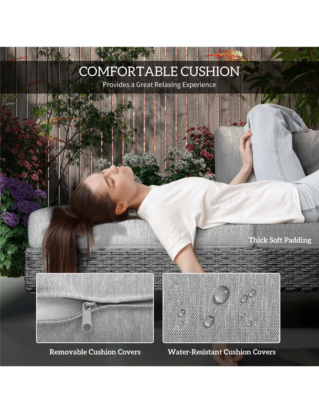 The Outsunny 5-Seater Rattan Wicker Sofa Set is perfect for enhancing your garden, patio, or any private outdoor space with a blend of comfort and style. Arrange the two-seater and three-seater sofas alongside the tea table to create a cosy seating area for afternoon tea or casual gatherings. Thanks to its modular design, you can easily reposition the pieces to suit your entertaining needs or to maximise space. The light grey cushions add a modern touch while providing plush comfort, ideal for relaxing with family or friends. This set also works well in covered verandas or sunrooms, bringing an inviting outdoor feel indoors.