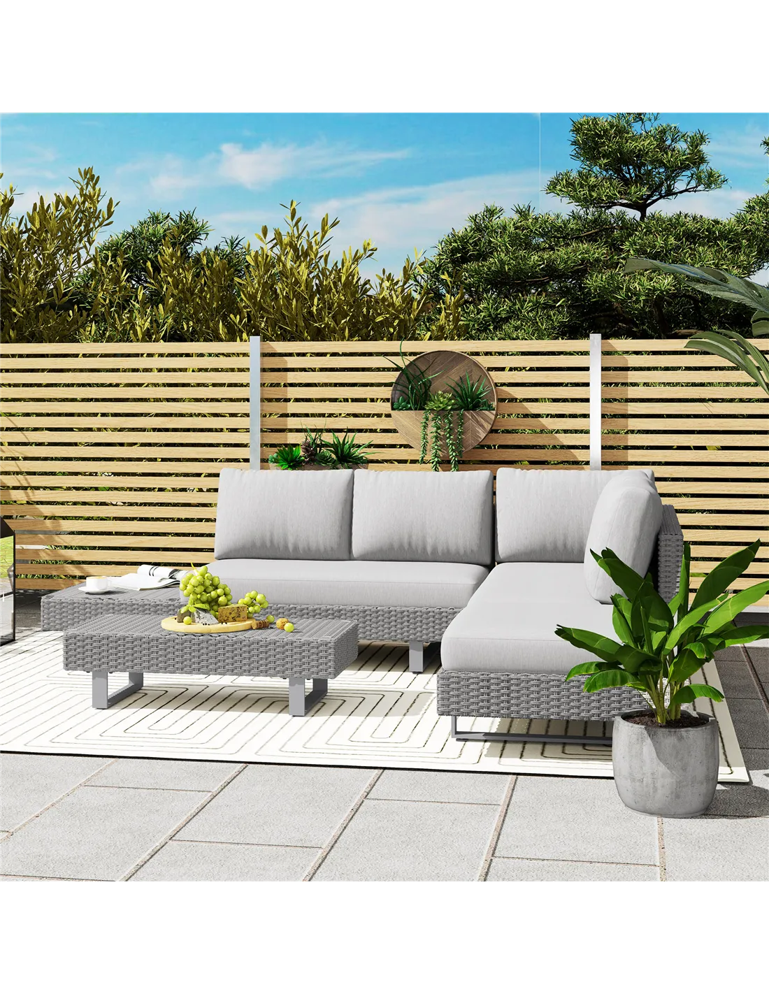 For extremely stylish and comfortable garden set, look to this from Outsunny. Comes with a two-seater sofa, three-seater sofa and matching table-freestanding pieces can be arranged differently if you wish. Wrapped in PE rattan, with a steel frame for core support, each piece of the outdoor furniture set is solid. Thick padded cushions on the seats and backs ensure you'll be relaxing comfortably for hours on end. Finished with a small end table for additional holding room.