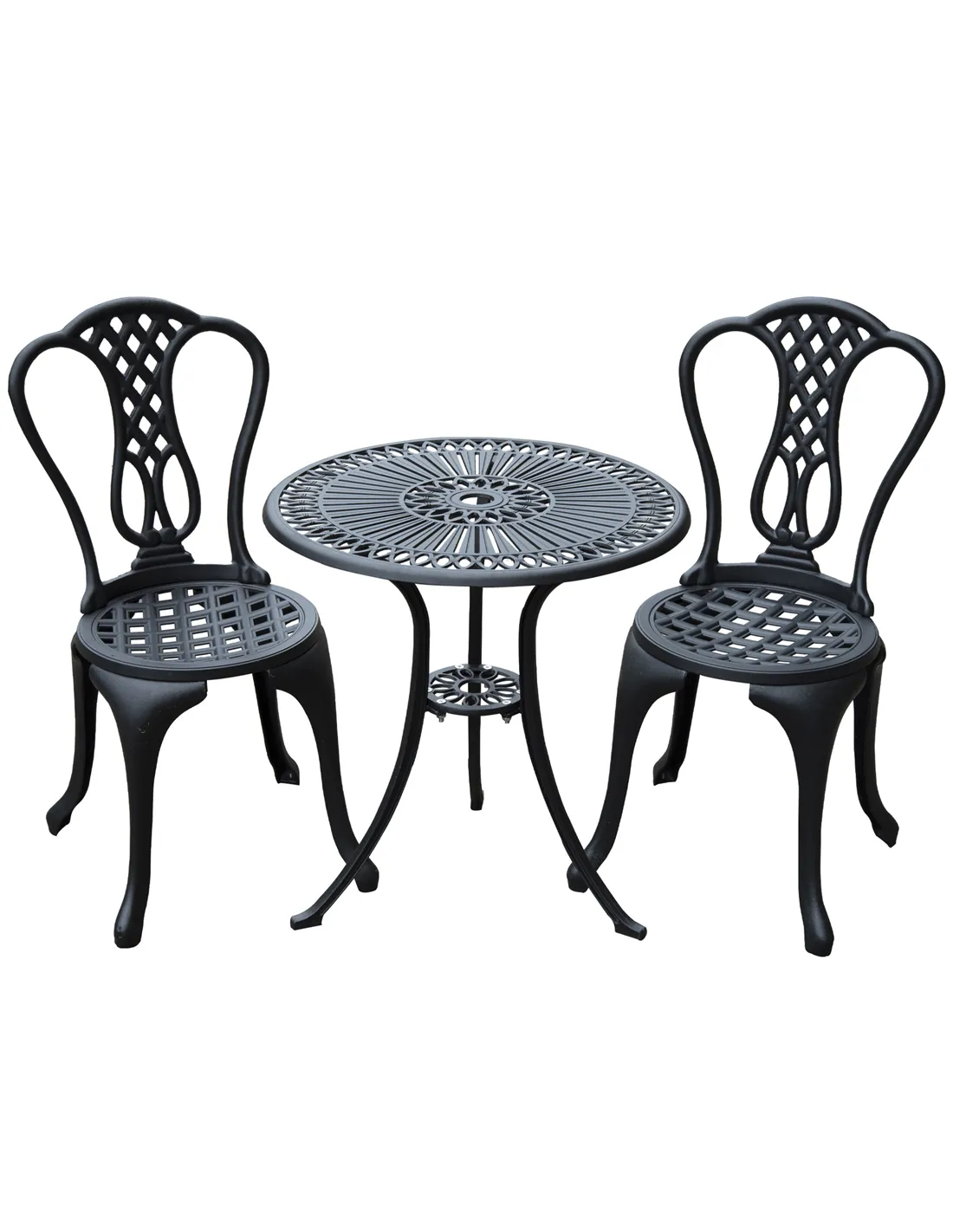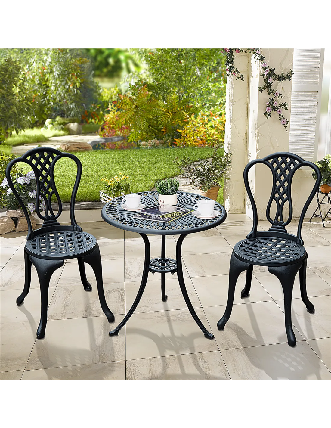 Outsunny 3 Piece Patio Cast Aluminium Bistro Set Garden Outdoor Furniture Table and Chairs Shabby Chic Style