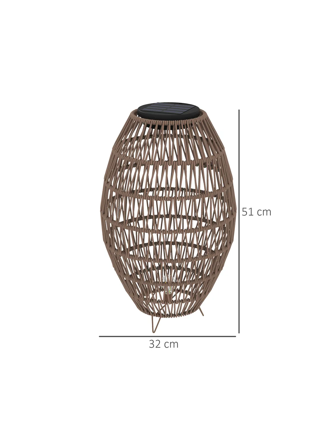 Outsunny Rattan Solar Lamp, Garden Solar Lantern with Auto On/Off Light, IP44 Waterproof, Decorative Outdoor Rattan Lamp for Porch, Pathway, Dark Brown