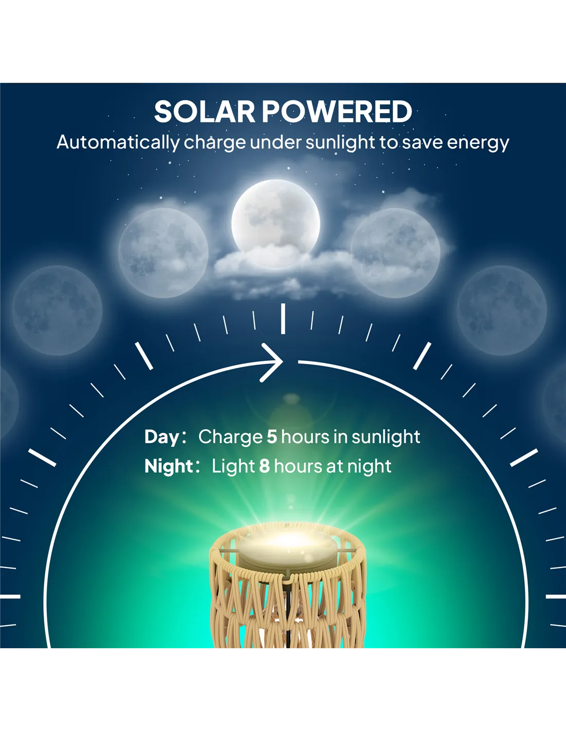 After approximately five hours of sunlight charging, the lamp provides up to eight hours of illumination, ideal for evening use. - Can this lamp be used in rainy weather?