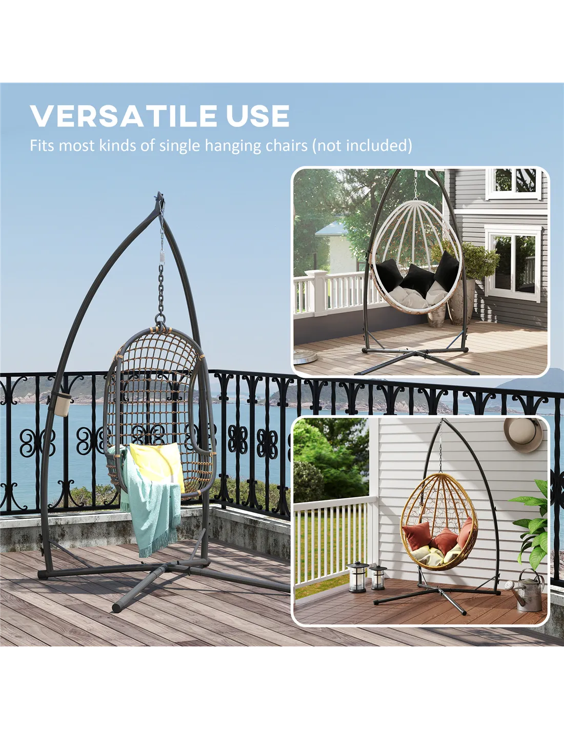 - Ideal for outdoor patios, gardens, or balconies, providing a sturdy frame to hang your favourite egg chair or hammock seat.