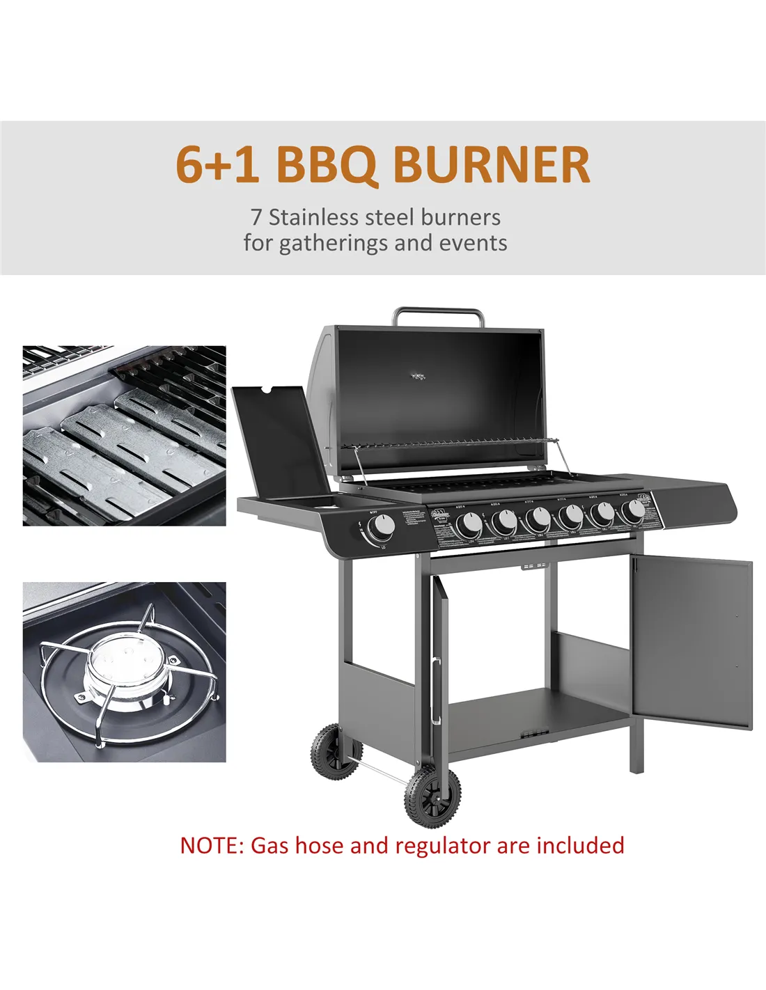 - NOTE: Regulator and Hose are Included with the BBQ grill.(pipe size: diameter=8mm, length>0.8m)