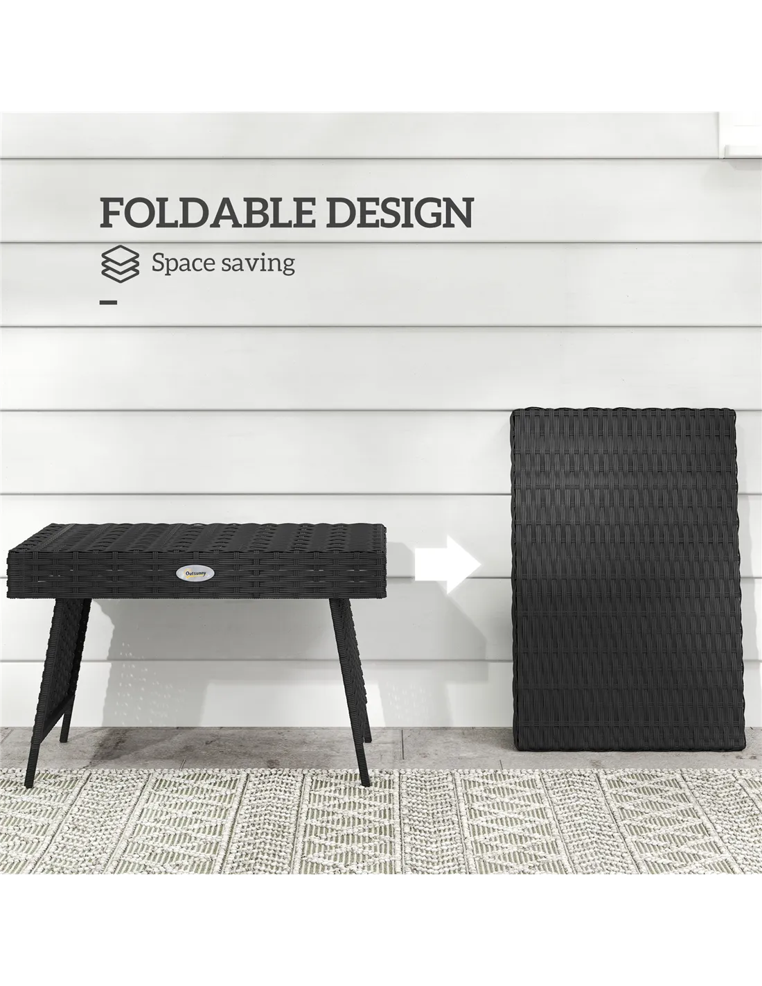 Not your classic rattan table-this Outsunny piece is doing things differently this season. The oblong shape is fitted with two long panel legs-a more futuristic look. The legs fold into each other, so this table is easy to store away. The galvanised steel frame means a strong structure, wrapped in plastic wicker: a rattan look which is great for extended use in your garden.