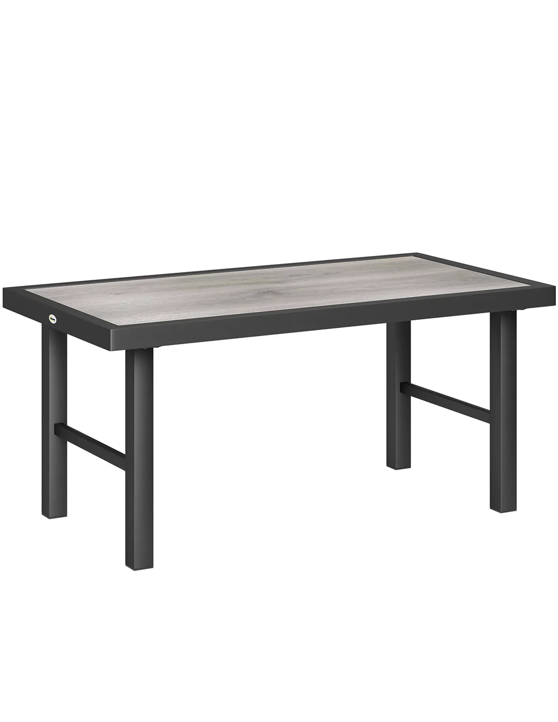 Outsunny Metal Garden Coffee Table, Outdoor Side Table with SPC Woodgrain Tabletop for Outside, Garden, Balcony, Porch, 100 x 53 x 46cm, Grey Wood Effect