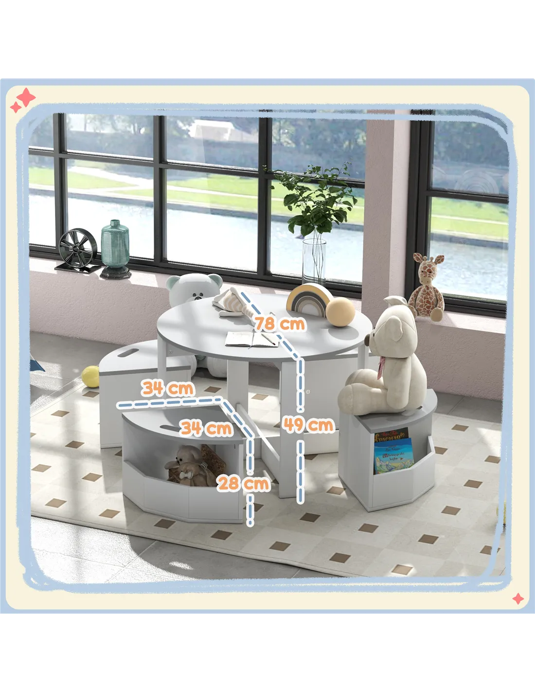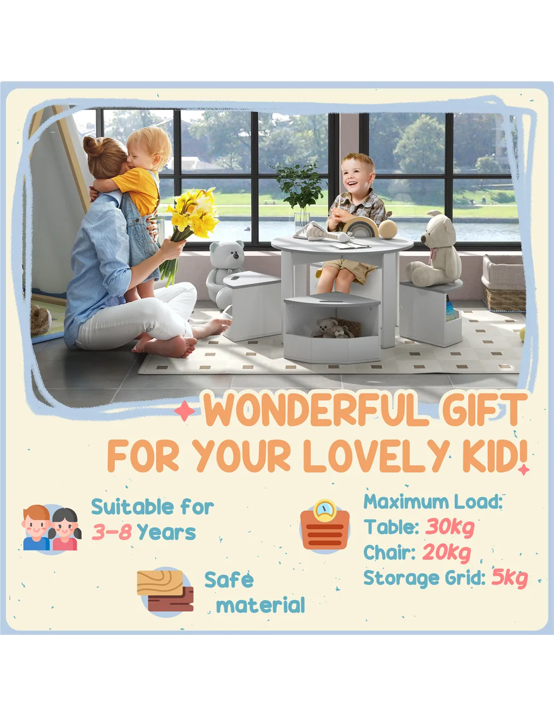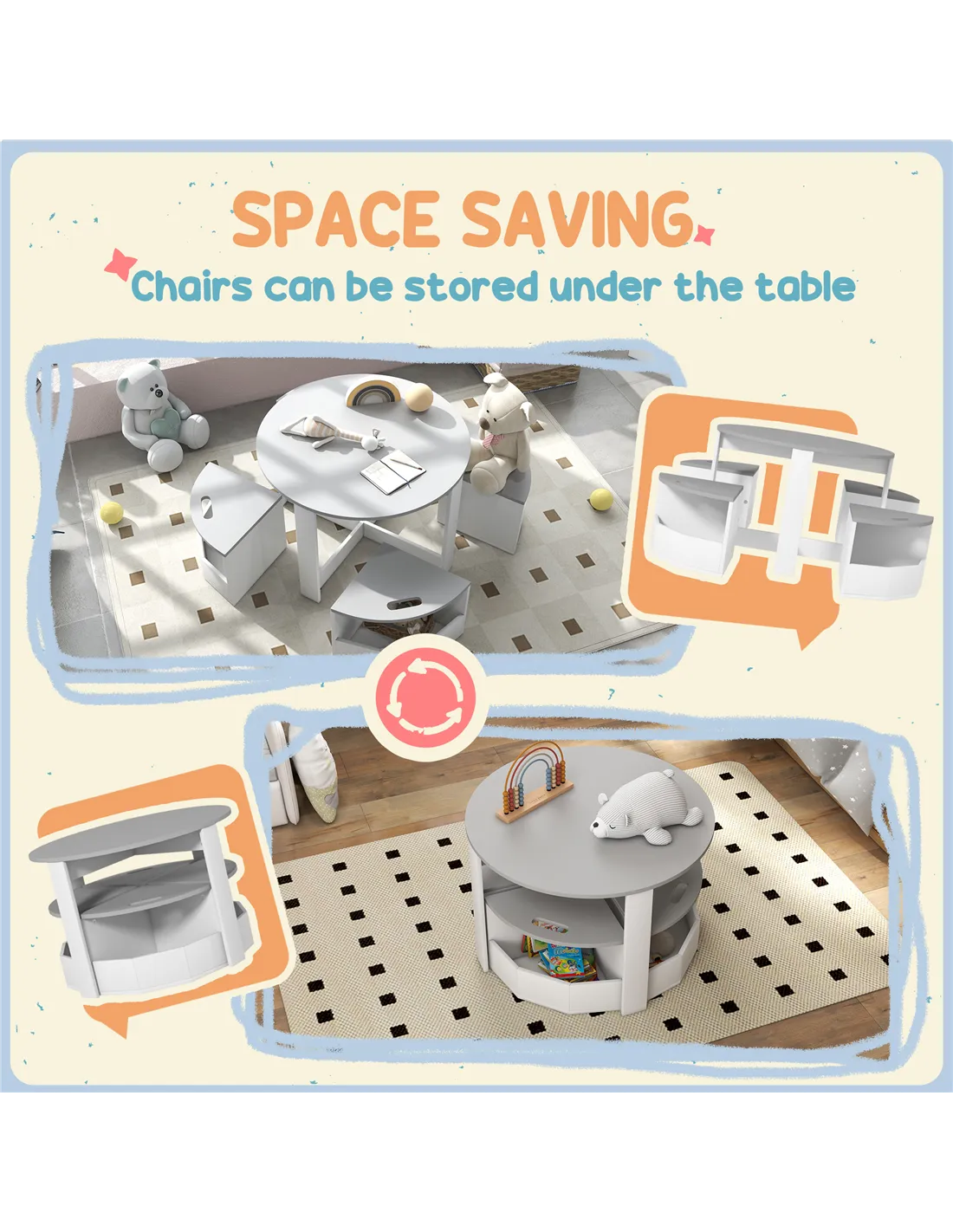 AIYAPLAY Five-Piece Kids Table and Chairs Set with Storage, for Ages 3-8 Years, Grey