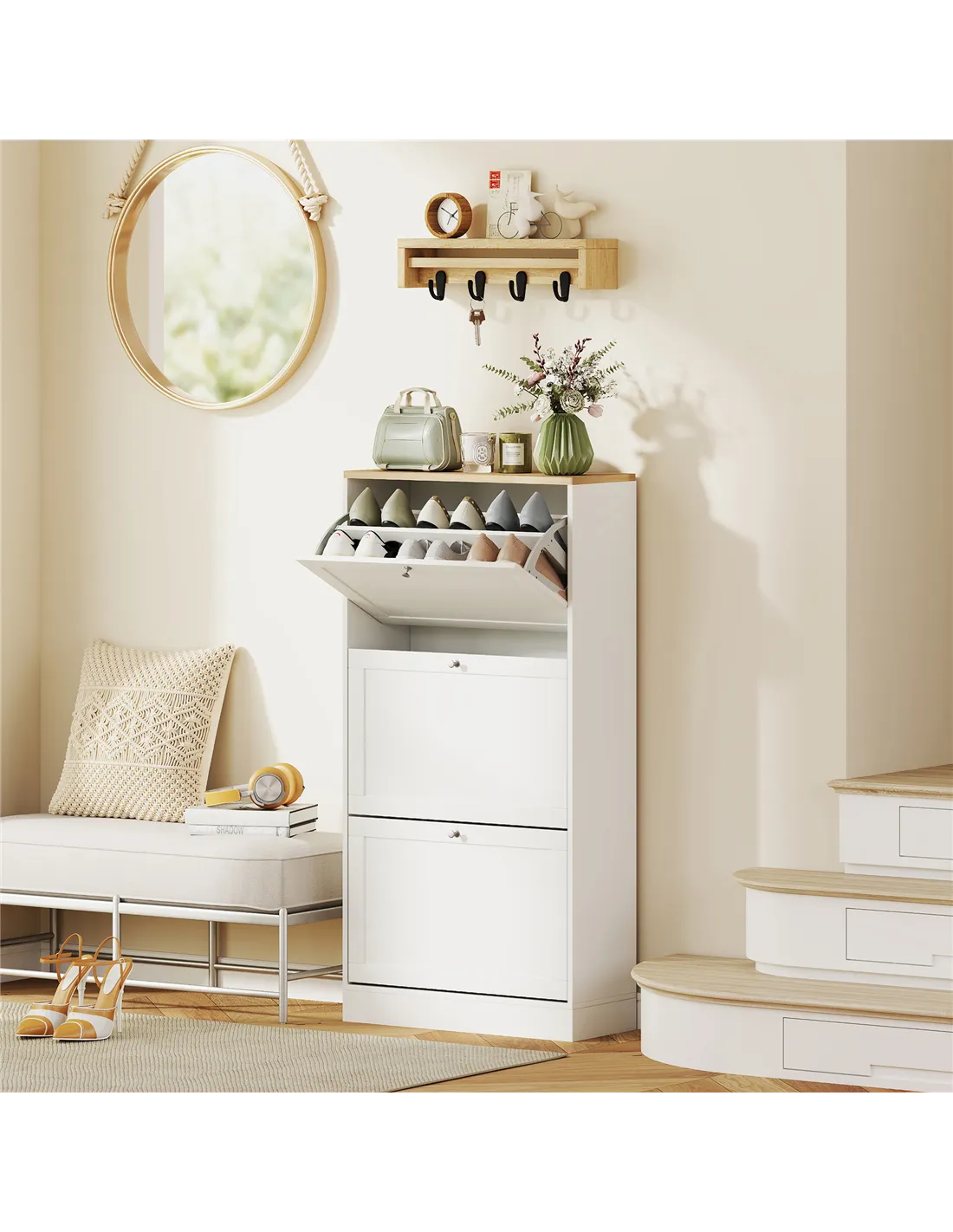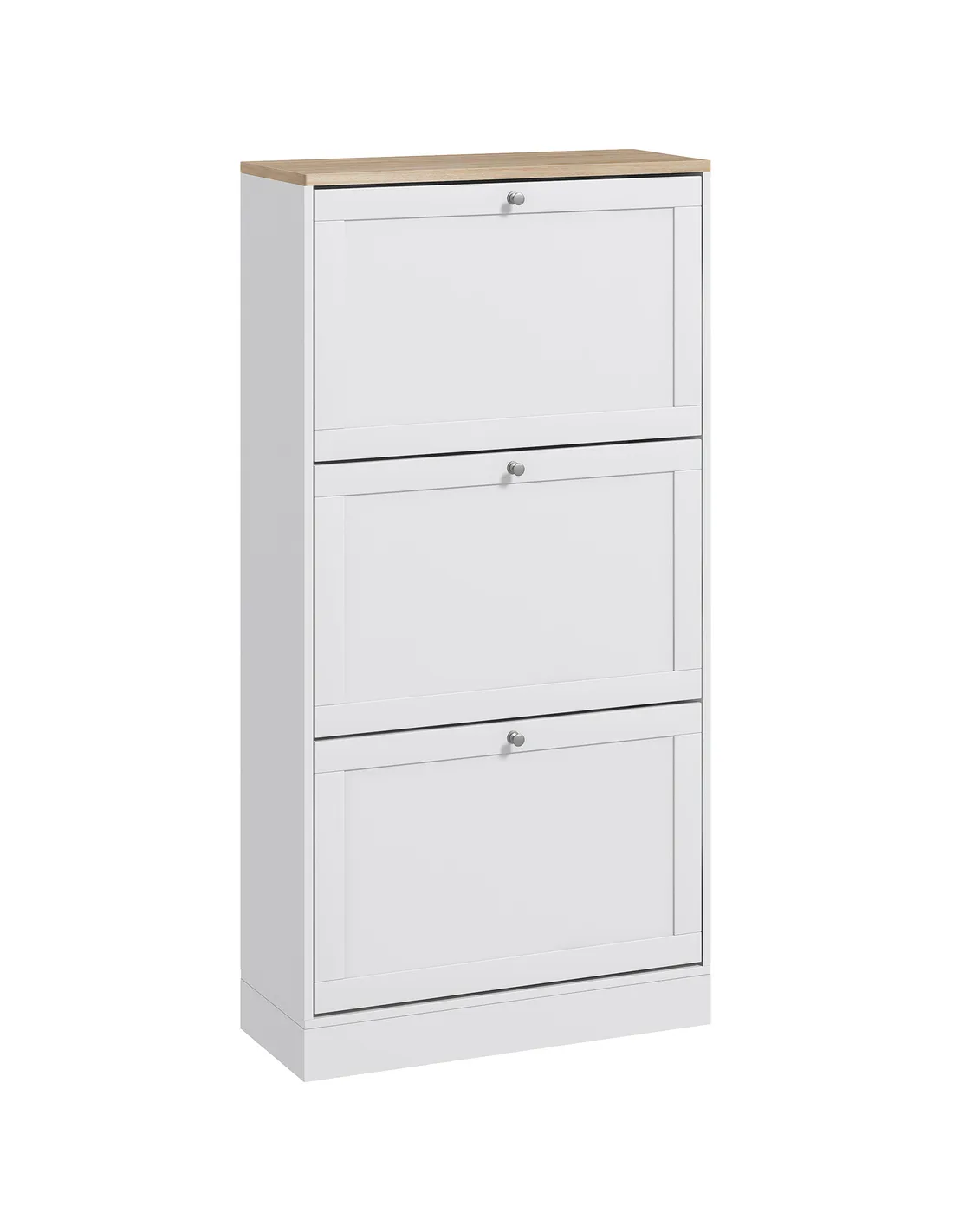 - Ideal for compact hallways or narrow entryways, this shoe cabinet keeps footwear organised without occupying much floor space.