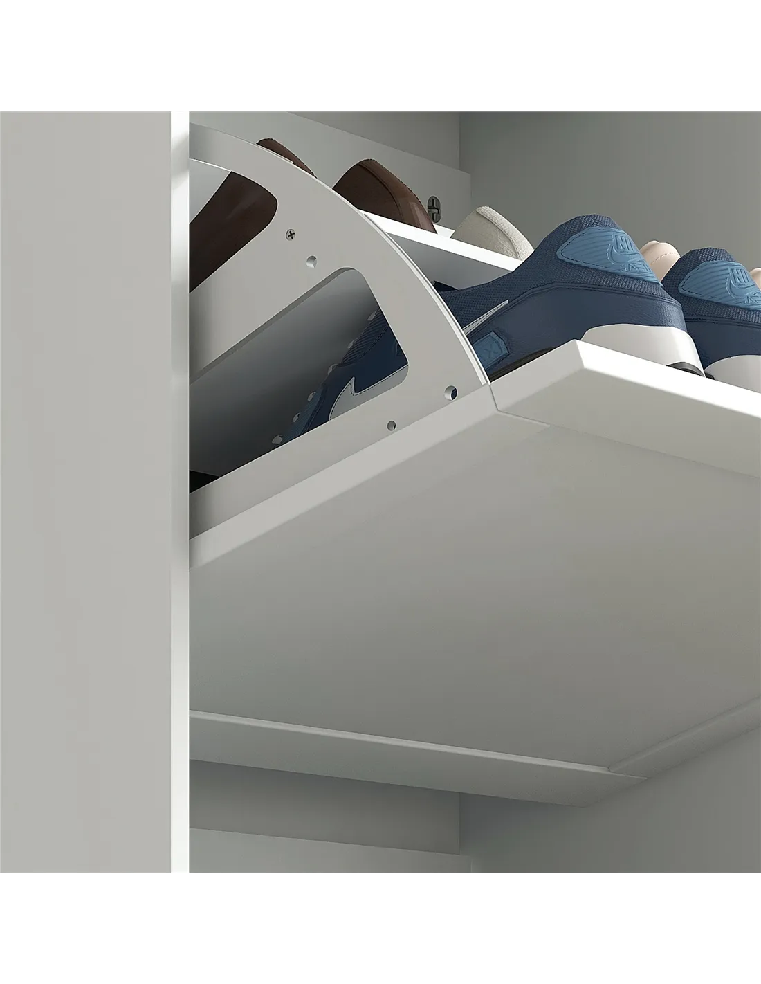 - Two-level adjustable shelf in each drawer, to fit in differently-sized footwear