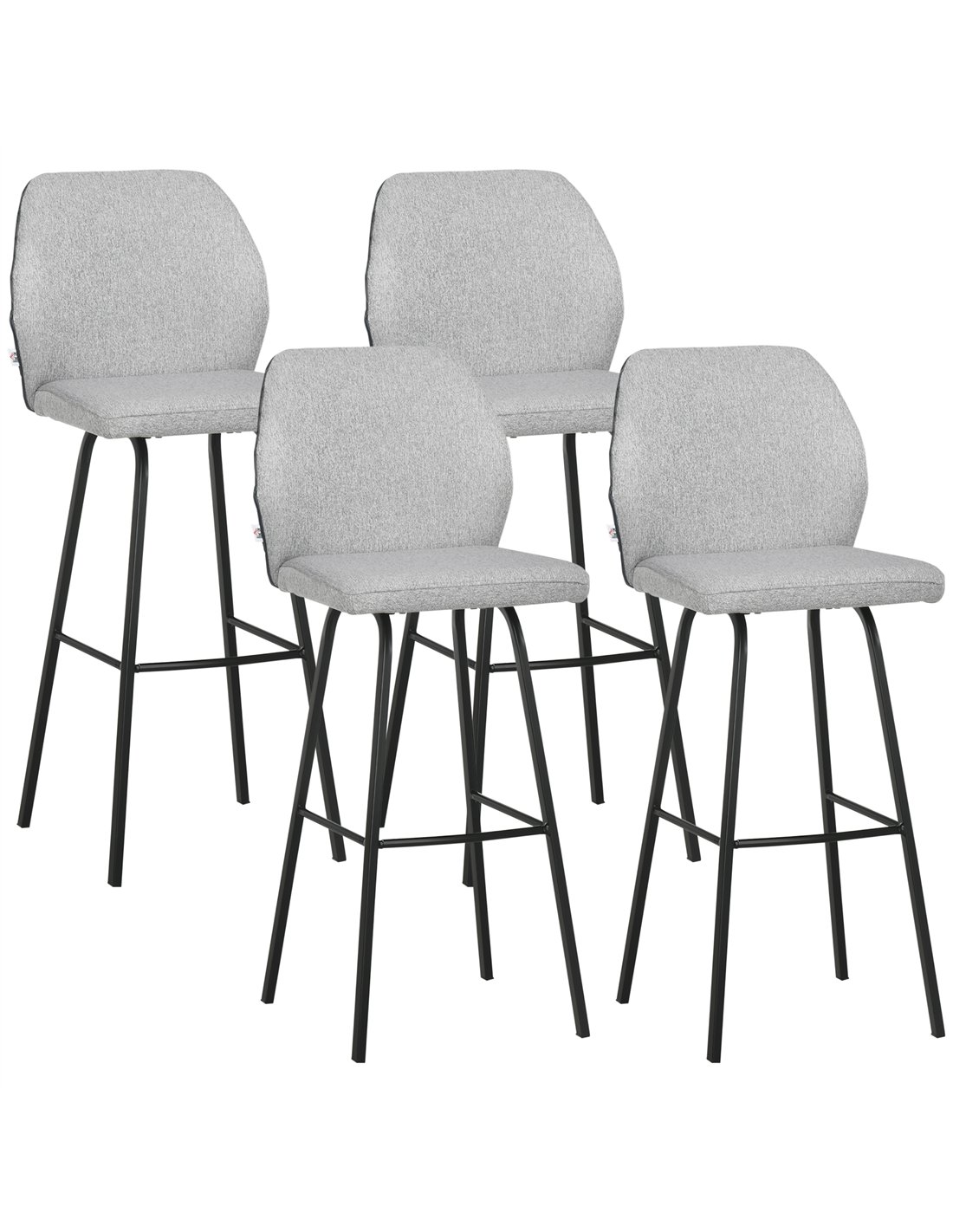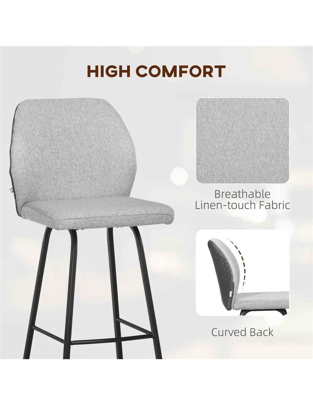 HOMCOM Bar Stools Set of 4, Linen-Touch Upholstered Bar Chairs, Kitchen Stools with Backs and Steel Legs for Dining Room, Light Grey