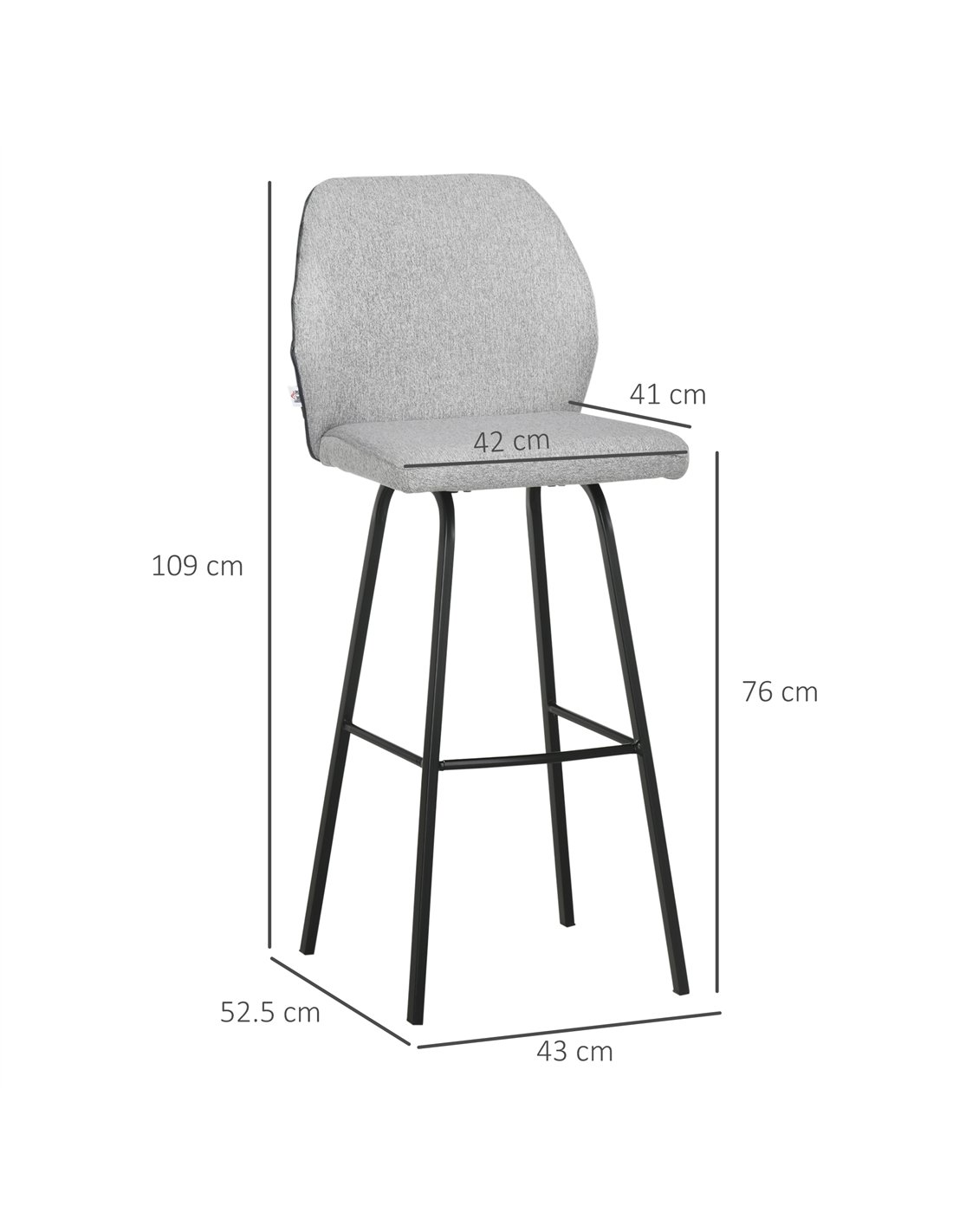 Highlight your home bar effortlessly: do it with these HOMCOM breakfast bar stools. Powder coated steel frames mean a strong, supportive core, fitted with armless seats which give plenty of room to sit. Padded seats for comfort, with the high backs giving your body support. The linen-look upholstery is stylish, smooth and easy to spot clean: an all-round winner. Complete with bottom bars to rest your feet.