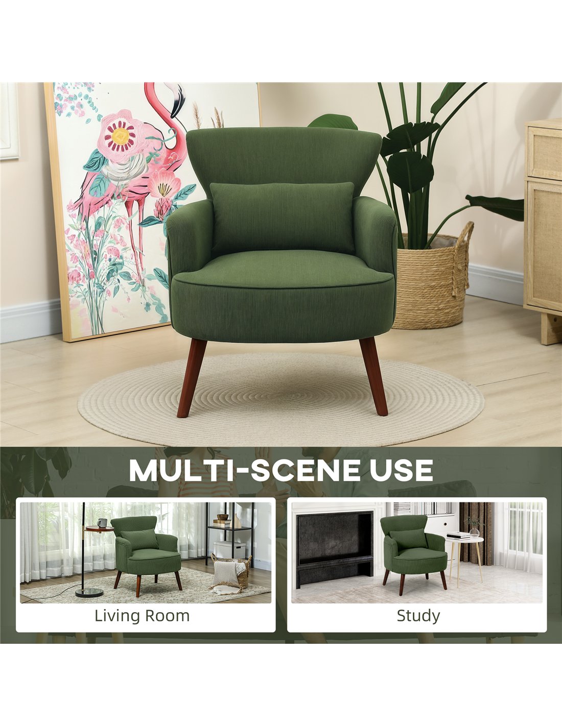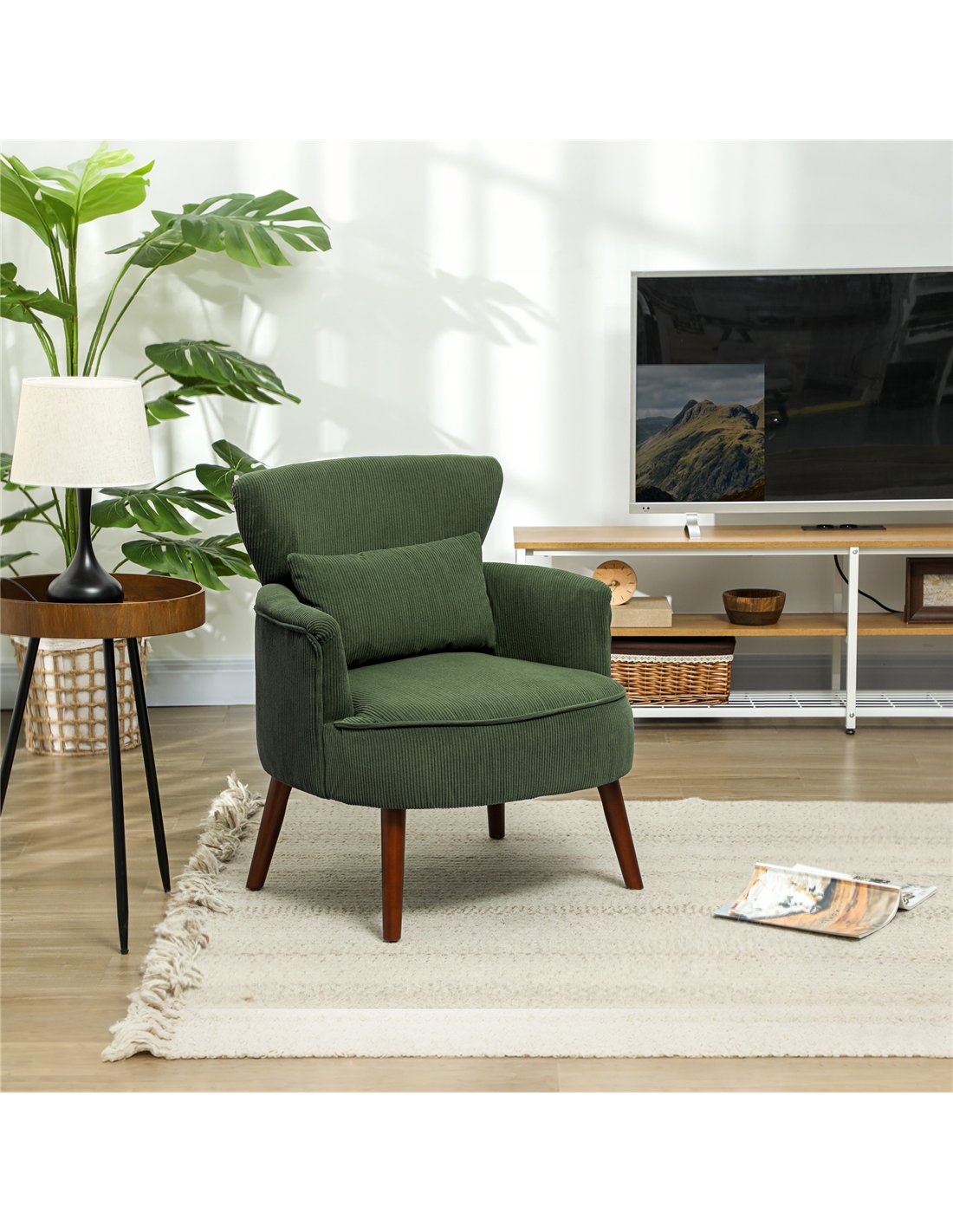 Lean into a retro touch with this HOMCOM snuggle chair. The relaxed cut, wing-shaped back and corduroy upholstery gives it a striking retro look, to bring character into your space. This armchair for small spaces is filled with high-density foam padding, 'S' springs and elastic bands, this is a comfortable piece, with a high back and armrests to keep you supported.