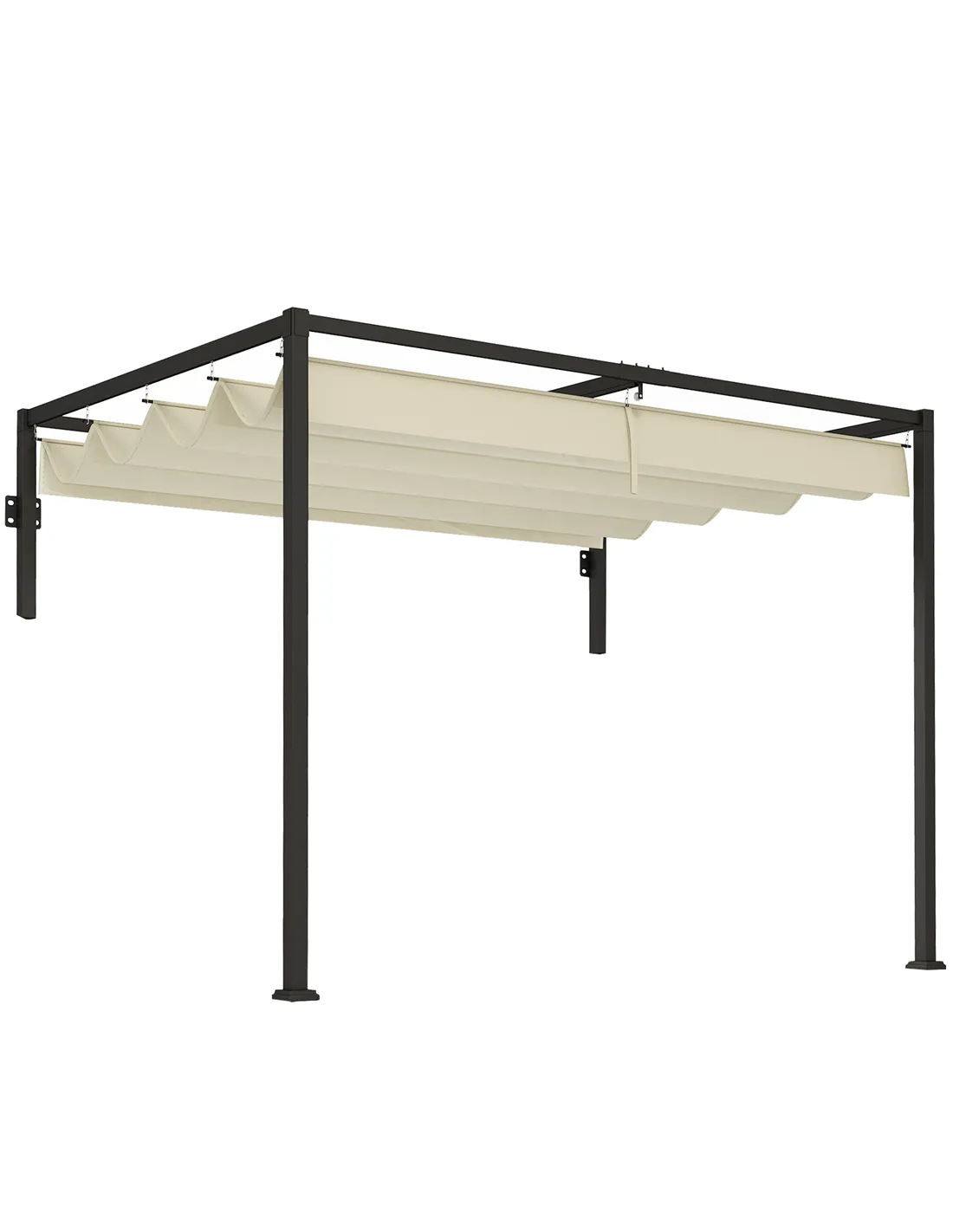 Be in control of how the sun shines around you. This Outsunny garden pergola comes with a retractable top canopy, so you can move it to any position you want. A powder coated steel frame for a robust structure, with the wall-less design creating an open and inviting atmosphere. 2 x 3(m) size means it is a spacious piece, great for bringing you and friends together. Set comes with four ground stakes, eight wall expansion screws and four ground expansion screws.