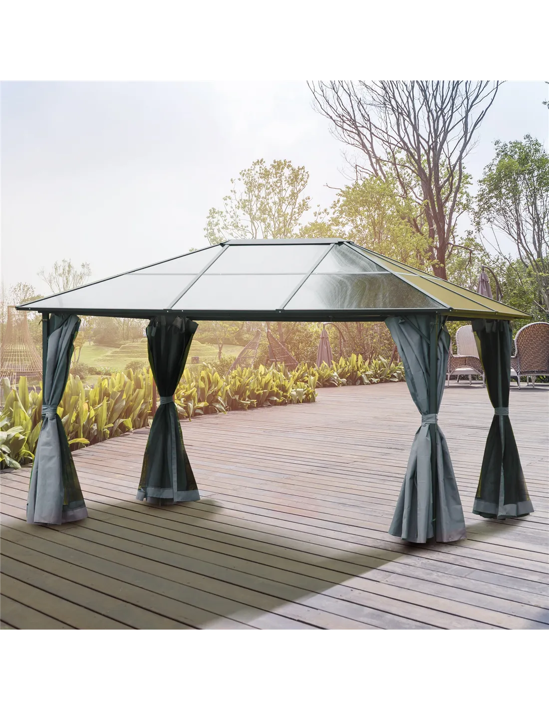 - Ideal as a permanent outdoor pavilion for enjoying your garden throughout the seasons, offering protection from sun, rain, and wind.
