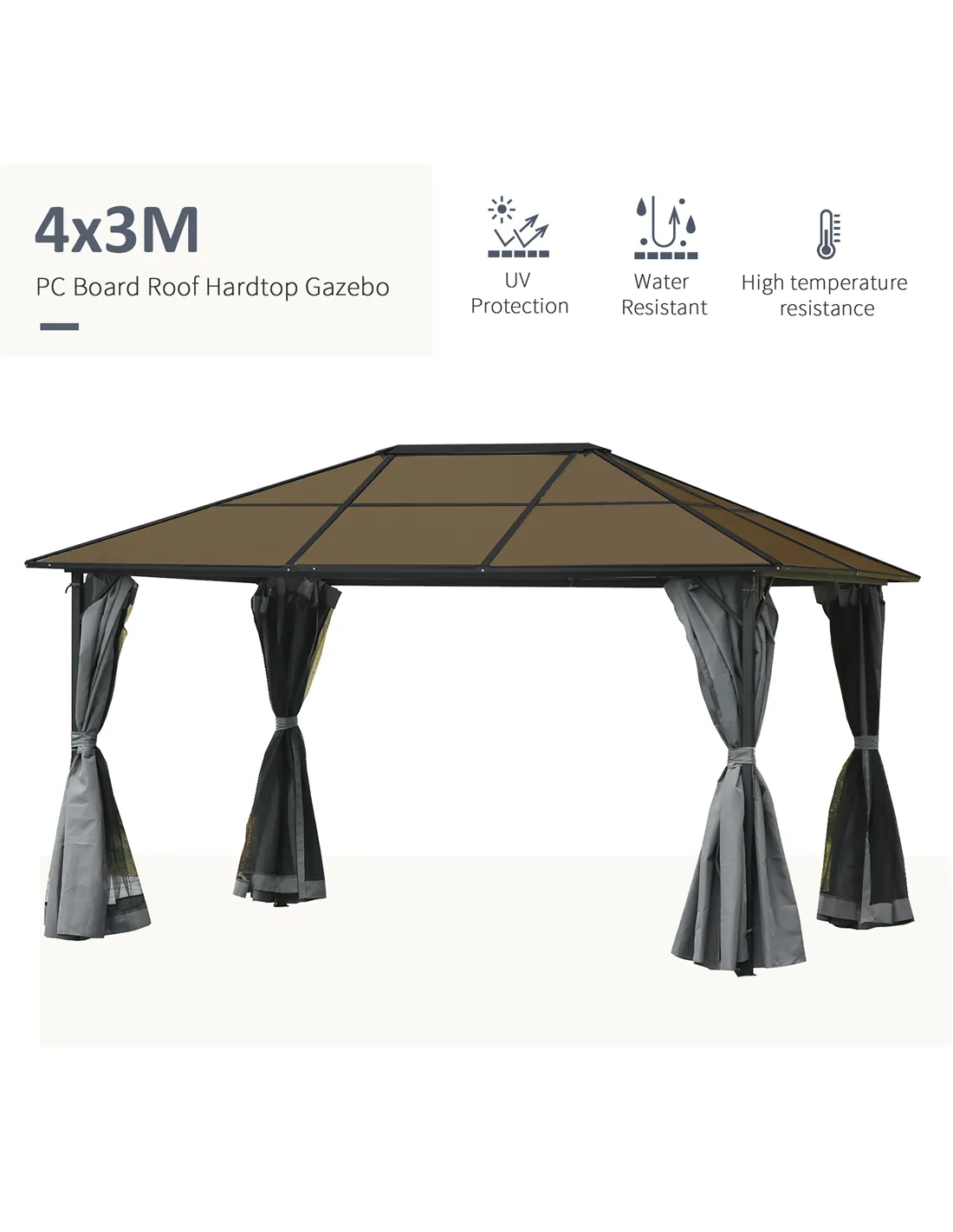 - Polycarbonate hardtop roof to protect the inside from sun or UV