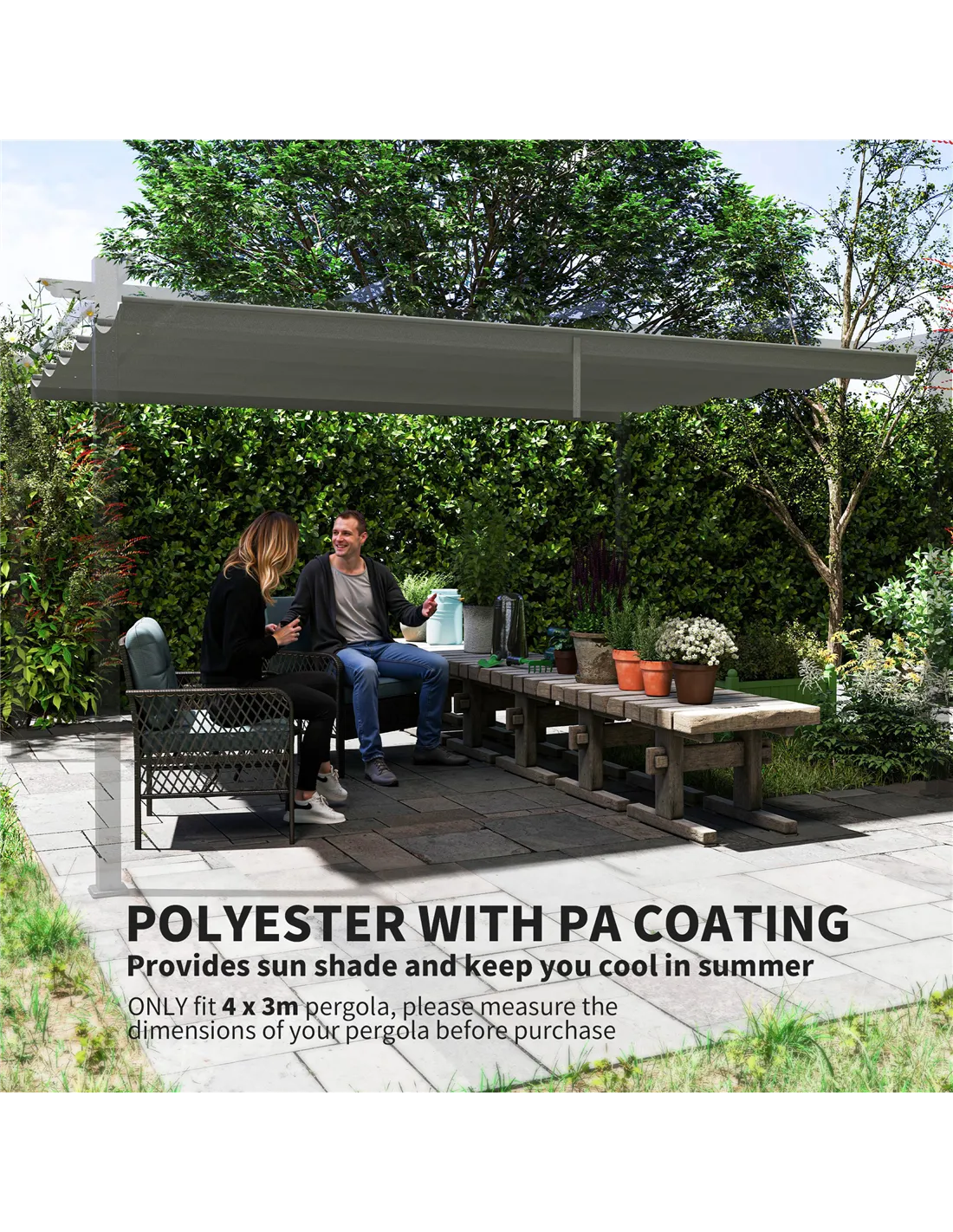 Outsunny Retractable Pergola Shade Cover, Replacement Canopy for 4 x 3 (m) Pergola, Retractable Roof, Light Grey