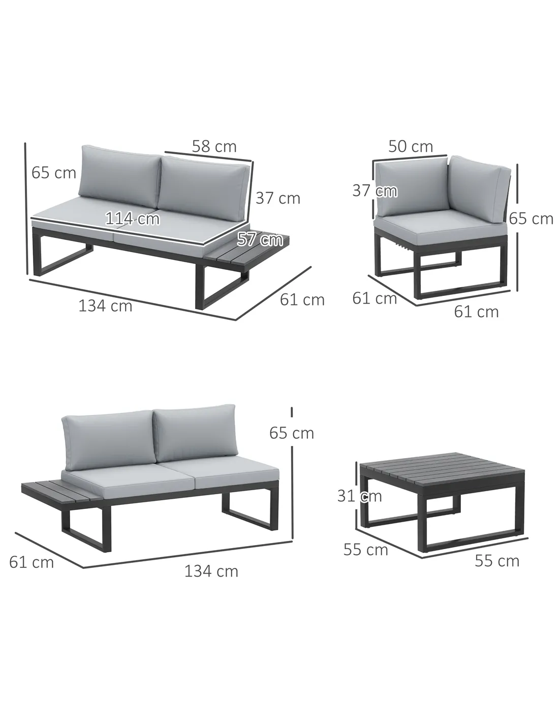Enjoy the outdoors in style with this Outsunny outdoor furniture set. Comes with two loveseats, a corner seat and a matching coffee table. Powder coated steel means each piece is strong, with the padded cushions keeping you comfortable. The small table included means a handy holding place.