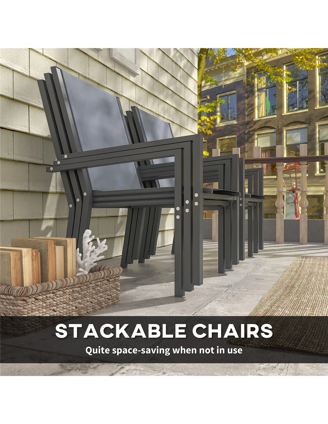 - Stackable chairs save space