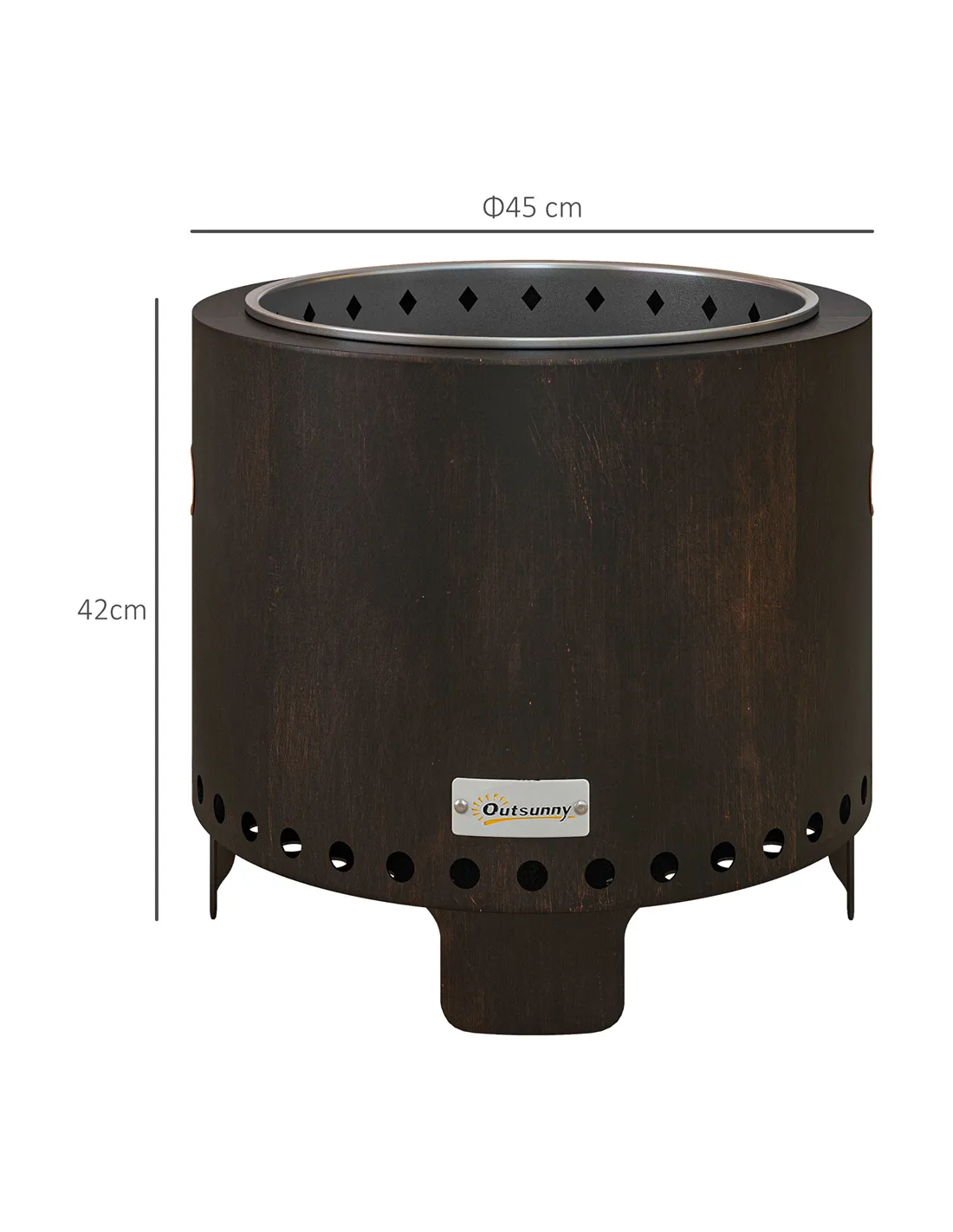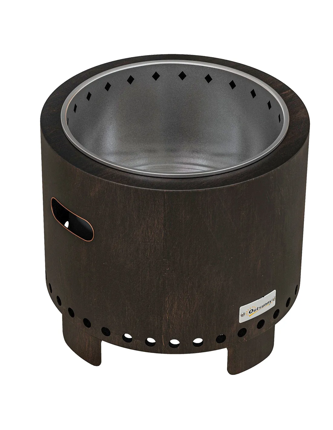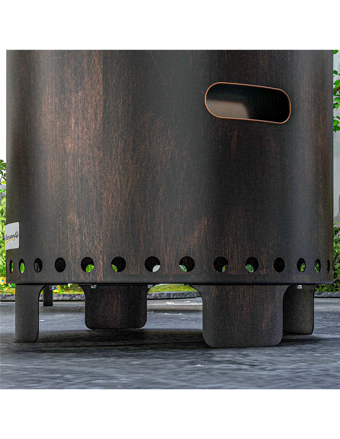 Sleek, stylish and super helpful: say hello to this Outsunny firepit. Made from powder-coated metal with distressed bronze tone finish, it's tough and high heat resistant. It has a smokeless secondary combustion system: oxygen enters from below and channels between the walls for a strong and powerful burn, whilst burning the fuel down to ash for a smokeless experience - enjoy the heat like never before!