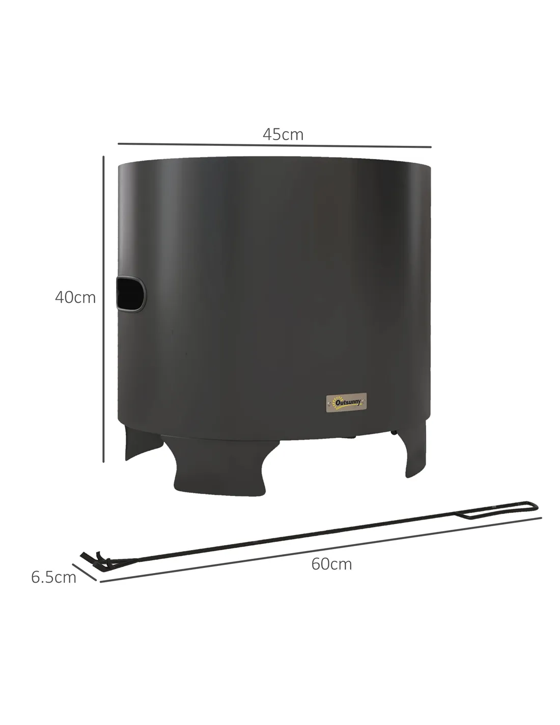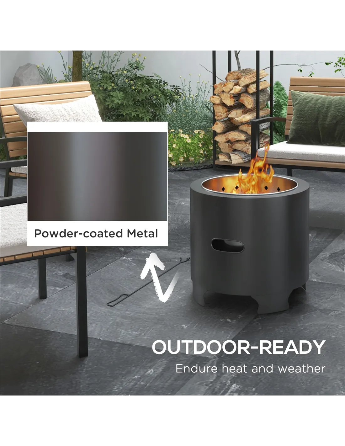 Sleek, stylish and super helpful: say hello to this Outsunny firepit. Made from powder-coated metal with stainless steel interior, it's tough and high heat-resistant. It has a smokeless secondary combustion system: oxygen enters from below and channels between the walls for a strong and powerful burn, whilst burning the fuel down to ash for a smokeless experience - enjoy the heat like never before!
