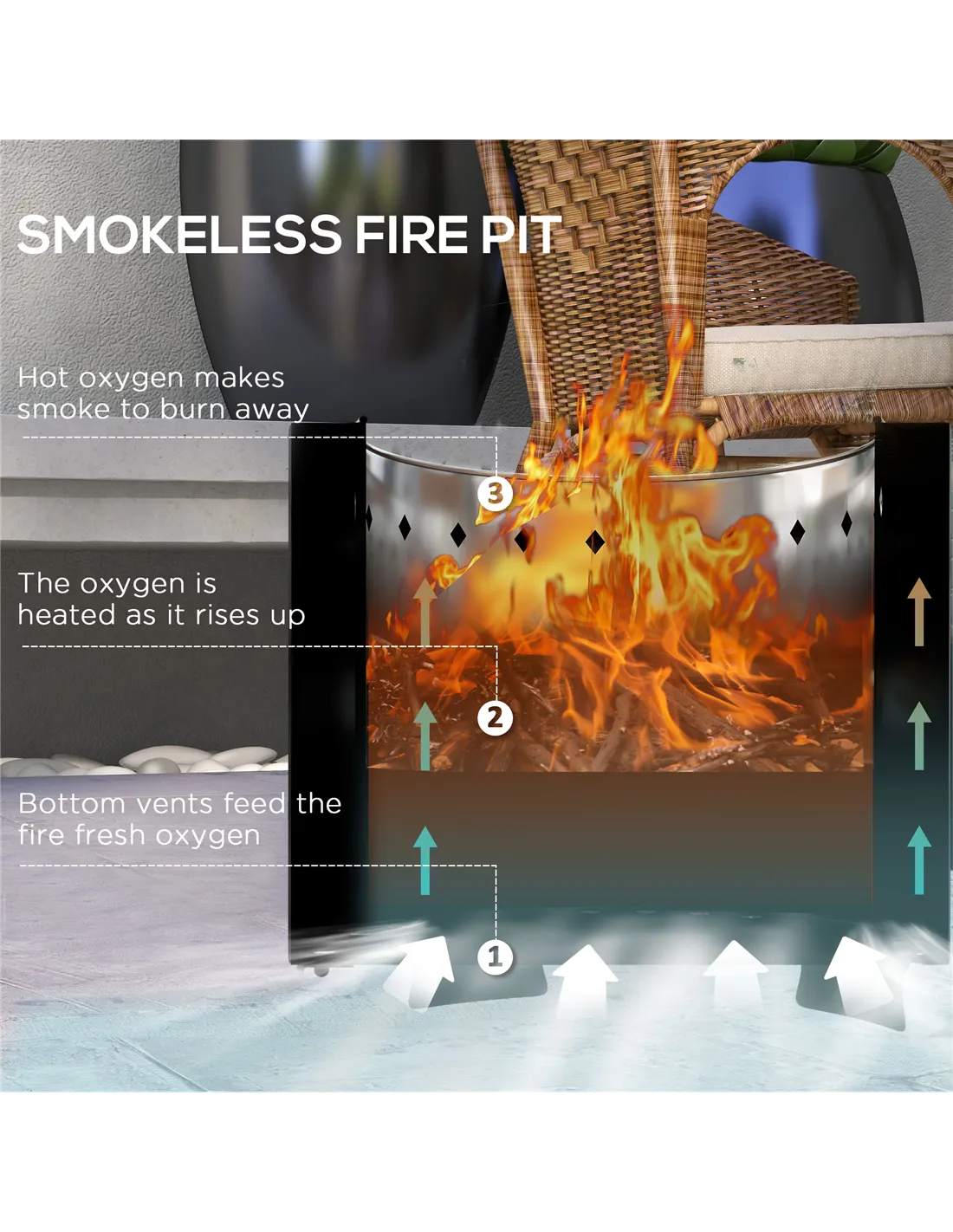Outsunny Smokeless Fire Pit, 45cm Portable Wood Burning Firepit, Round Metal Bonfire Stove with Poker for Garden, Camping, Black