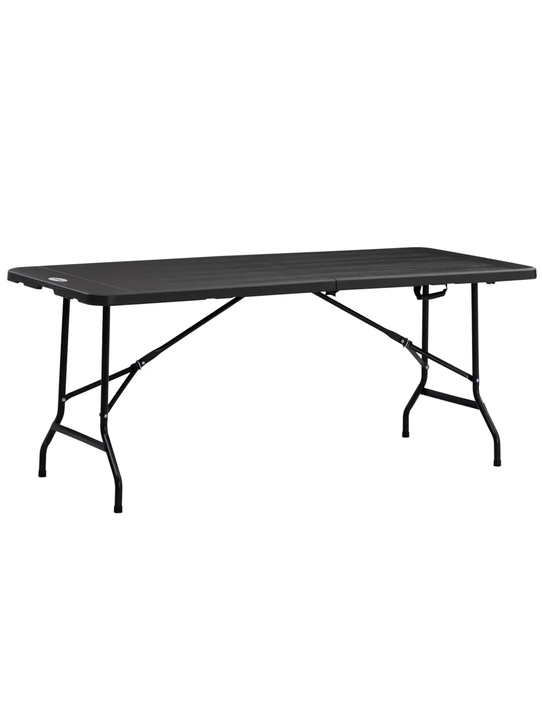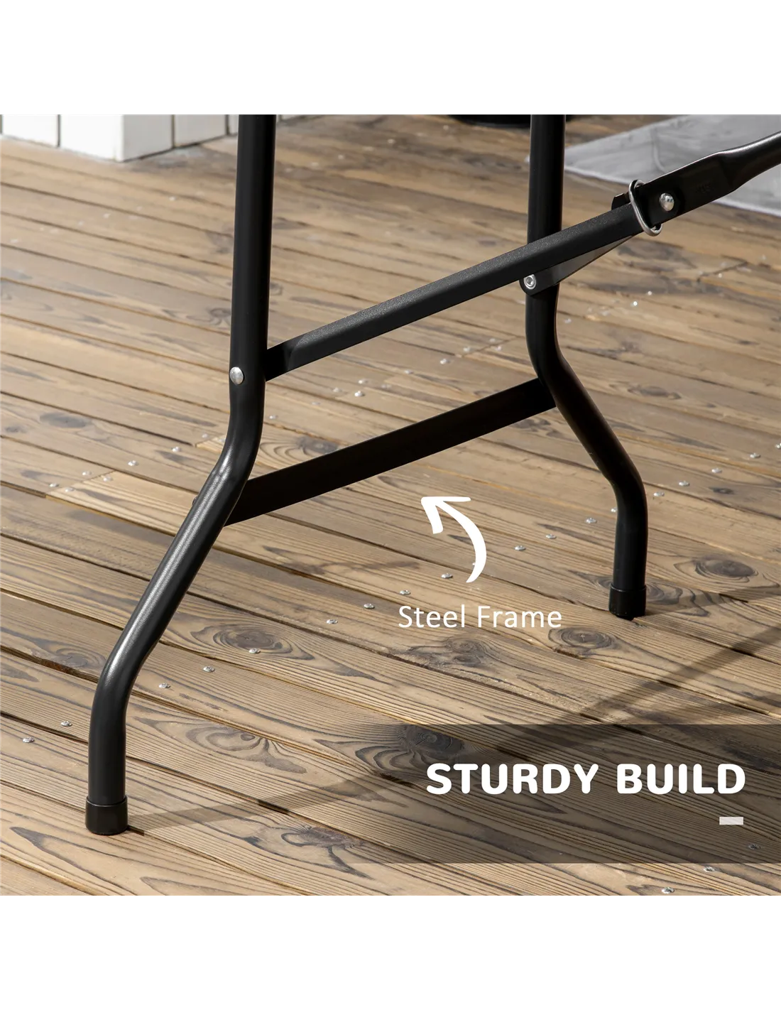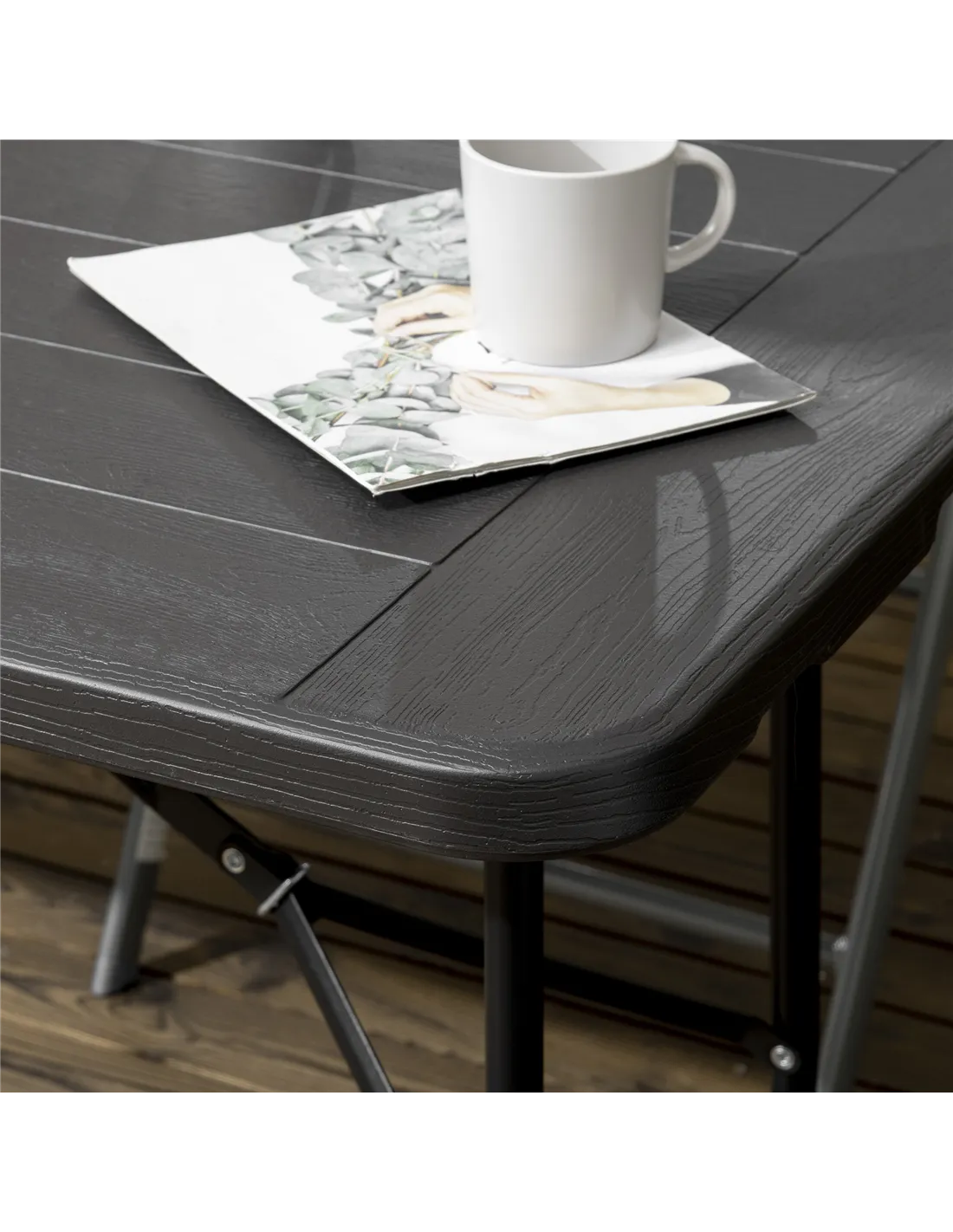 Pick a stylish addition for dining, afternoon tea and party on patios, decks with this folding garden table from Outsunny! The combination of steel frame and HDPE tabletop ensure reliable daily use. The table is a foldable structure, easy to carry anywhere you want and store in a corner when not in use for saving space. Add enduring beauty, style and grace to your garden with this essential part of any outdoor living space.