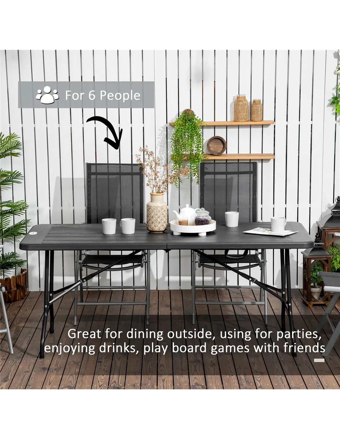 Outsunny Folding Garden Dining Table for 6, Rectangular Outdoor Dining Table with HDPE Tabletop, Foldable Garden Table with Steel Frame for Balcony, Porch, Charcoal Grey