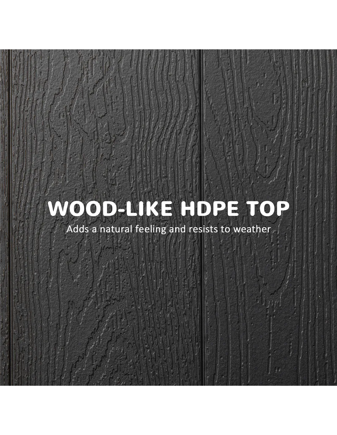- Wood-like HDPE tabletop for a natural feeling and resistant to weather